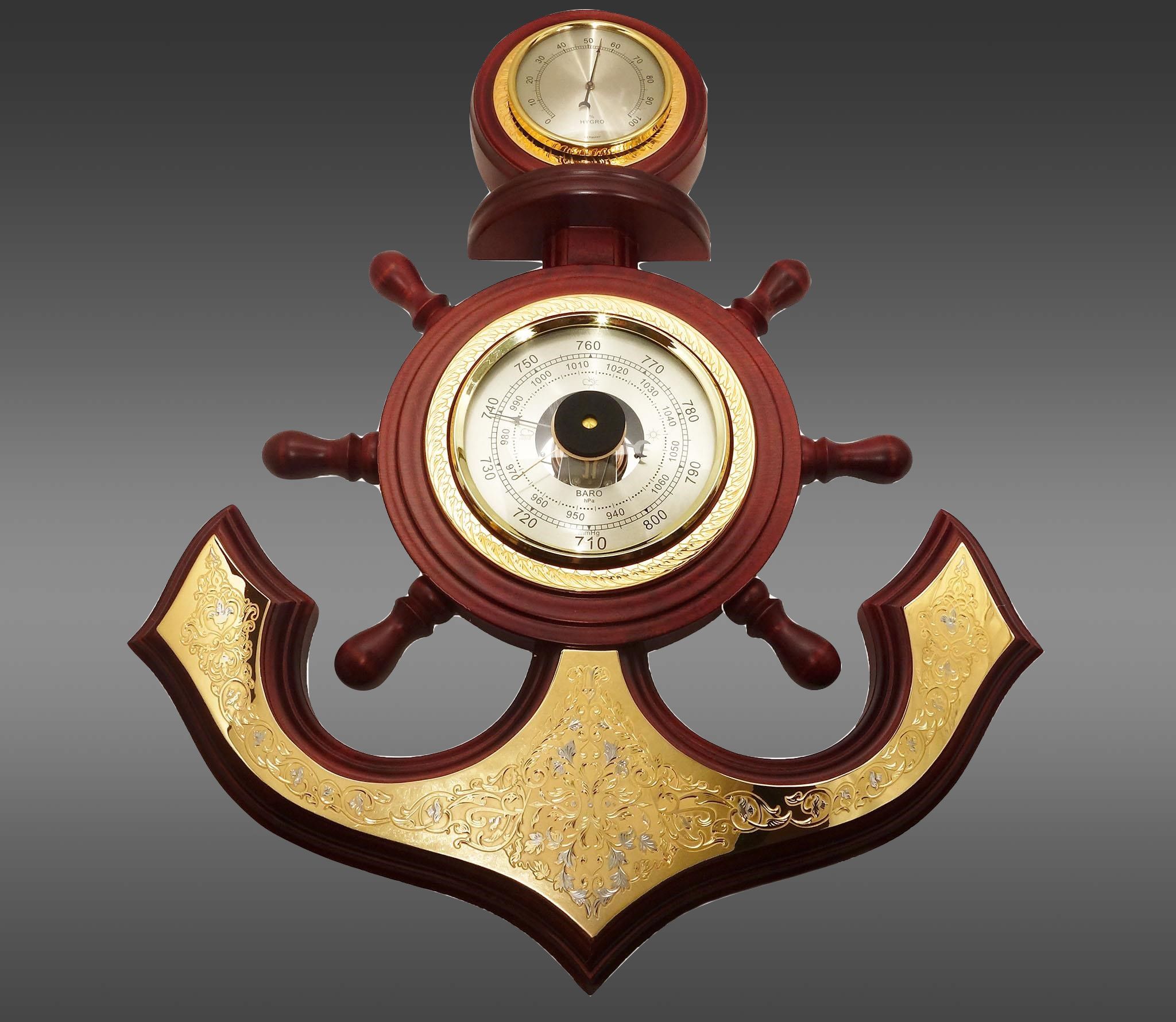 Äåêîðàòèâíûé áàðîìåòð è ãèãðîìåòð "ßêîðü", èçãîòîâëåííûé â Çëàòîóñòå, ïðåêðàñíî ñî÷åòàåò â ñåáå ïðàêòè÷íîñòü è èçûñêàííûé äèçàéí. Èçäåëèå âûïîëíåíî â ìîðñêîì ñòèëå è óêðàøåíî ñòèëèçîâàííûì ÿêîðåì, ñèìâîëèçèðóþùèì óñòîé÷èâîñòü è íàäåæíîñòü. Áàðîìåòð è ãèãðîìåòð ïîìîãóò ñëåäèòü çà èçìåíåíèåì ïîãîäíûõ óñëîâèé è óðîâíåì âëàæíîñòè âîçäóõà. Ýòîò ïðåäìåò èñêóññòâà, ðó÷íîé ðàáîòû, èäåàëüíî âïèøåòñÿ â èíòåðüåð îôèñà èëè êàáèíåòà, äîáàâèâ åìó íåïîâòîðèìîãî øàðìà. Ïîäàðîê áóäåò öåíåí äëÿ ëþáèòåëåé ìîðñêîé òåìàòèêè, èñòîðèè, à òàêæå äëÿ âñåõ, êòî öåíèò ïðåêðàñíîå è ôóíêöèîíàëüíîå. |