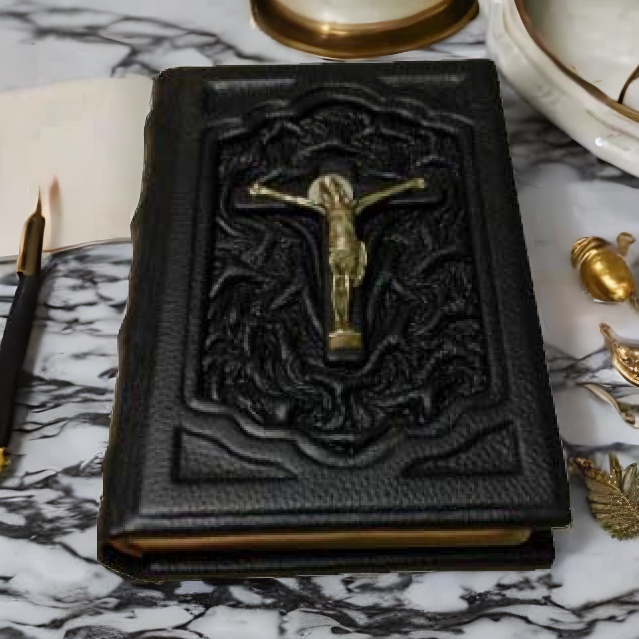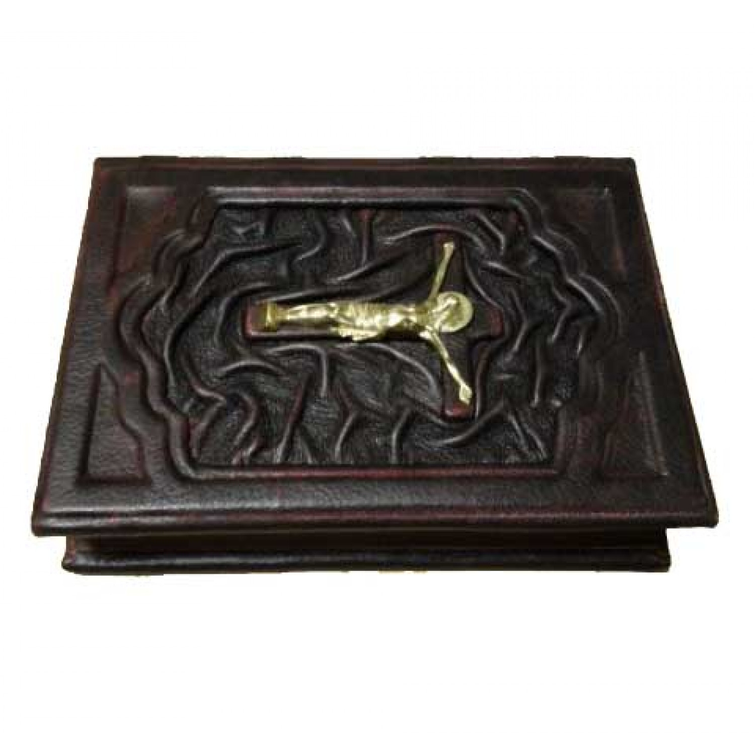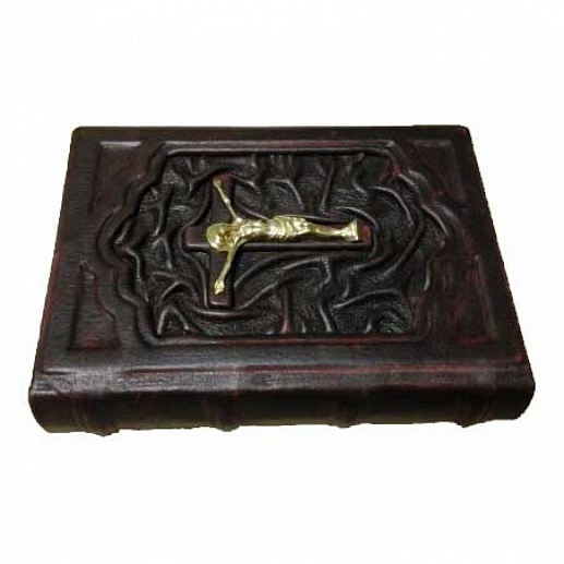 Ýòî èñêëþ÷èòåëüíîå èçäàíèå â êîæàíîì ïåðåïëåòå ðó÷íîé ðàáîòû øèêàðíî îòäåêîðèðîâàíî ãëàâíûì ñèìâîëîì ïðàâîñëàâèÿ – ðàñïÿòèåì. Èçãîòàâëèâàåòñÿ öåíòðàëüíûé ýëåìåíò îáëîæêè èç ìåòàëëà ñ íàíîñèìîé â ïîñëåäñòâèè ïîçîëîòîé îñîáîãî êà÷åñòâà, áëàãîäàðÿ ÷åìó îí äîëãîå âðåìÿ ñîõðàíÿåò ñâîè ýñòåòè÷åñêèå êà÷åñòâà. ×òîáû ïîíÿòü, íàñêîëüêî äîðîãà ìîæåò ñòàòü òàêàÿ êíèãà â êà÷åñòâå ïîäàðêà, ñòîèò ëó÷øå ïîíÿòü êðîïîòëèâûé è óñåðäíûé òðóä, âêëàäûâàåìûé íàøèì ìàñòåðîì. Íà ïåðâîì ýòàïå ïå÷àòàåòñÿ ñîäåðæàíèå, äëÿ ýòîãî èñïîëüçóåòñÿ áóìàãà âûñøåãî êà÷åñòâà, îáëàäàþùàÿ óíèêàëüíûìè ñâîéñòâàìè. Èìïîðòíàÿ êîæà ïîä ðóêîâîäñòâîì èñêóññòíîãî àâòîðà èäåàëüíî ðîâíî ëîæèòñÿ íà îñíîâàíèå. Êàæäûé ìèëëèìåòð èìååò îùóòèìóþ ïàëüöàìè ôàêòóðó. Áîãàòî, íî â òîæå âðåìÿ óìåðåííî óêðàøåííîå èçäàíèå, ïðåäñòàâëÿåò ñîáîé èçäåëèå ñïîñîáíîå ïåðåâåðíóòü Âàøå ïðåäñòàâëåíèå î òîì, êàê äîëæíà âûãëÿäåòü êíèãà. Ïðåäñòàâëåííàÿ êíèãà õîðîøî èçâåñòíà íå òîëüêî âåðóþùèì ëþäÿì, â ðàçíûõ ïå÷àòíûõ âàðèàíòàõ åå ìîæíî îòûñêàòü ïðàêòè÷åñêè â ëþáîé ñåìüå. Îíà ïîâåñòâóåò î ïðèøåñòâèÿ Õðèñòà, ïðîïèñûâàåò äîãìû è ïðàâèëà ïðàâîñëàâíîãî ìèðà. ×òîáû èçãîòîâèòü ïðàâèëüíî âûâåðåííóþ îáëîæêó, áåç ëèøíèõ ñêëàäîê ñ ðàñïîëîæåííûì ñïåðåäè è ñçàäè òèñíåíèåì, íåîáõîäèìî îñîáûì îáðàçîì îáðàáîòàòü êîæó. Òîëüêî ìàòåðèàë êà÷åñòâåííîé âûäåëêè èäåò íà îôîðìëåíèå.  ìåñòå ñãèáà ðàçðûâàì ïðåïÿòñòâóåò ñëèçóðà. Ïåðñîíàëèçàöèÿ òàêîãî ïîäàðêà è äåëàåò åãî äëÿ êàæäîãî þáèëÿðà îñîáåííûì. Îôîðìëåííàÿ îáëîæêà «Áèáëèè» ïîä ñòàðèíó ñòàëà óëüòðàñîâðåìåííîé è âîñòðåáîâàííîé ó ìíîãèõ êîëëåêöèîíåðîâ. Íàêëàäêà : ðàñïÿòèå ëàòóíü, îôñåòíàÿ áóìàãà |
