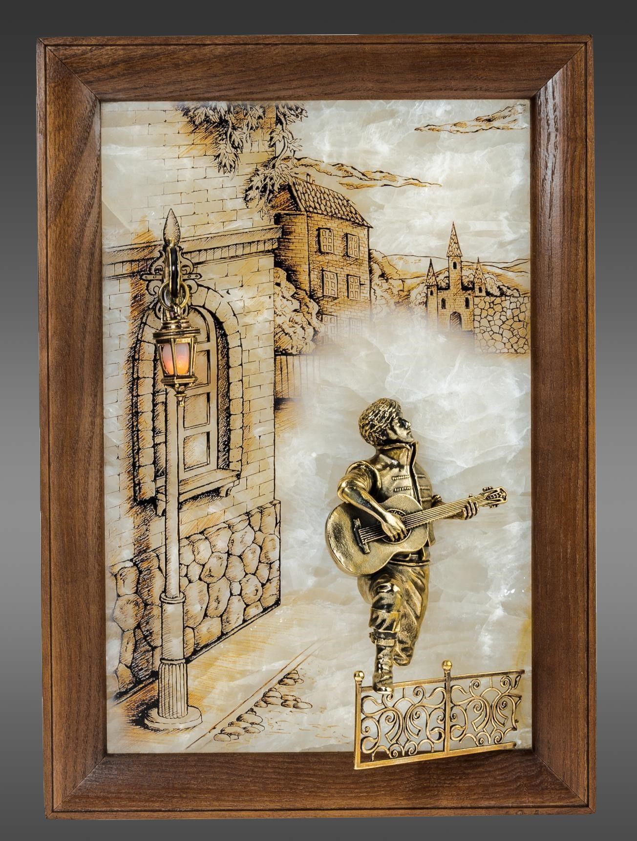 Áðîíçîâàÿ êàðòèíà "Ñåðåíàäà. Ïàðåíü" ñ ïîäñâåòêîé