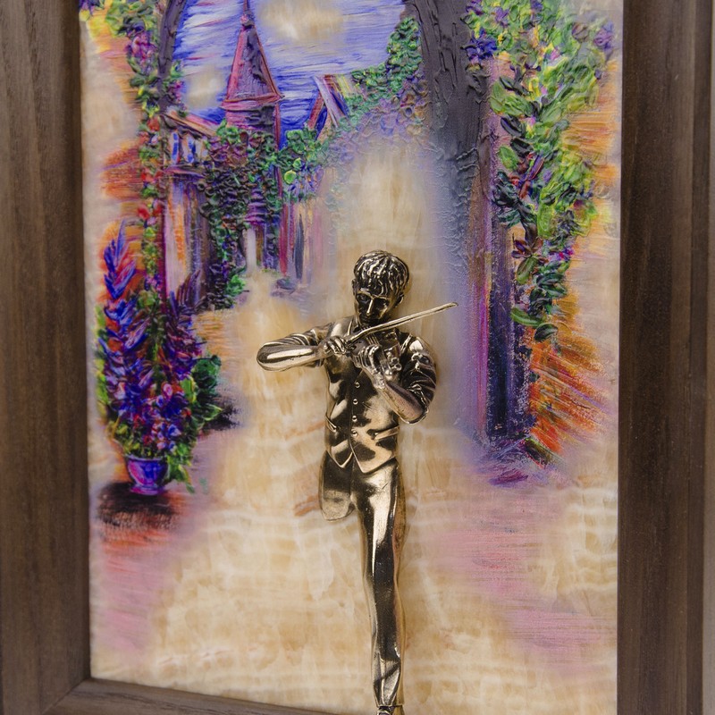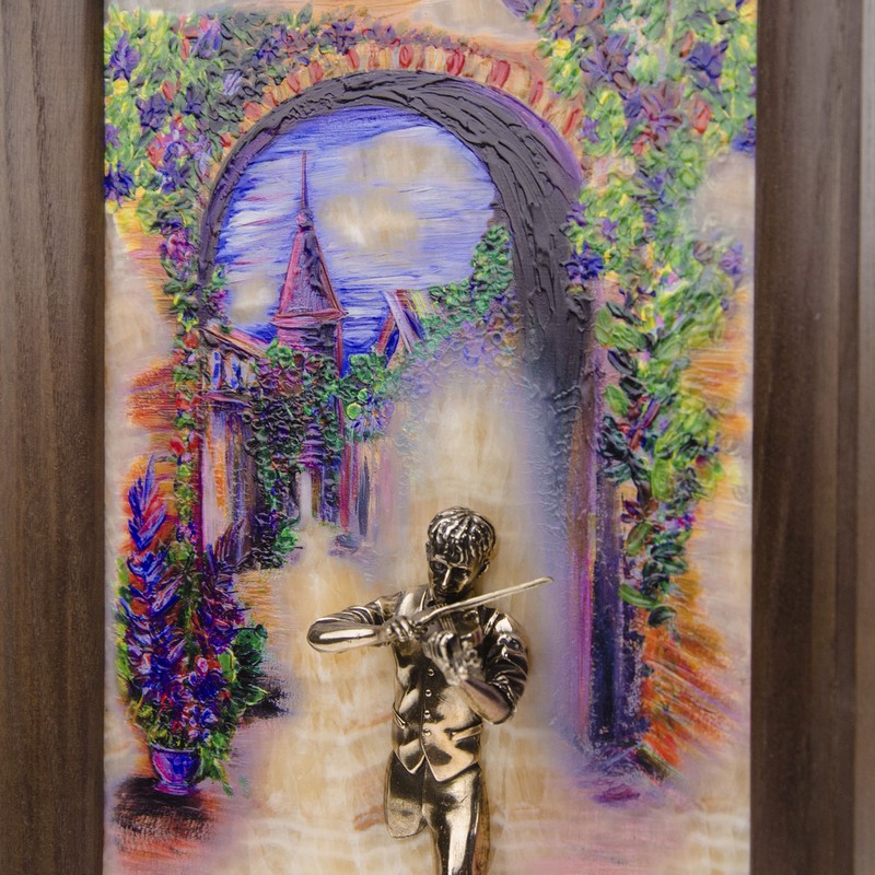Ðàññâåò íà óþòíîé óëî÷êå êðàñèâîãî ñòàðèííîãî ãîðîäêà. Óëèöà óòîïàåò â çåëåíè è öâåòàõ, â ðàññâåòíûõ êðàñêàõ ÷óâñòâóåòñÿ ïðîõëàäíàÿ ñâåæåñòü ðàííåãî óòðà. Íà ôîíå àðêè, îáâèòîé ïëåòóùèìèñÿ öâåòàìè, òàëàíòëèâûé ìóçûêàíò ïîñâÿùàåò çàðäåâøåéñÿ çàðå ñâîþ êîìïîçèöèþ. Çâóêè ñêðèïêè, ñìåøèâàÿñü ñ ïåñíîïåíèåì ðàííèõ ïòèö, âîëíóþò äóøè ðåäêèõ ïðîõîæèõ, ïðîáóæäàÿ â ñåðäöàõ ÷óâñòâî ïðåêðàñíîãî. Ñêðèïà÷, ÷üÿ âäîõíîâåííàÿ ìåëîäèÿ ðàñòâîðèòñÿ â ýòîì ðàññâåòå, îñòàâèò ÷àñòè÷êó ñâîåé äóøè âìåñòå ñ ïîñëåäíèìè íîòàìè âîëøåáíîãî èíñòðóìåíòà. |
