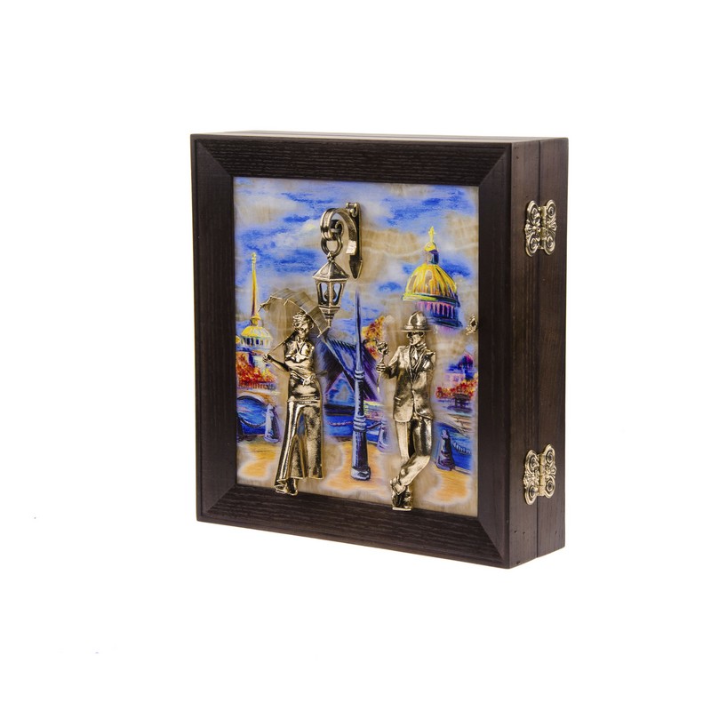 Áðîíçîâàÿ êëþ÷íèöà íàñòåííàÿ "Âå÷åðíÿÿ ïðîãóëêà. Ìîñò" ñ ïîäñâåòêîé