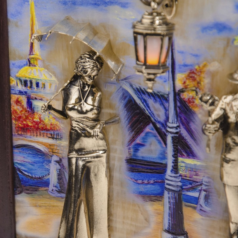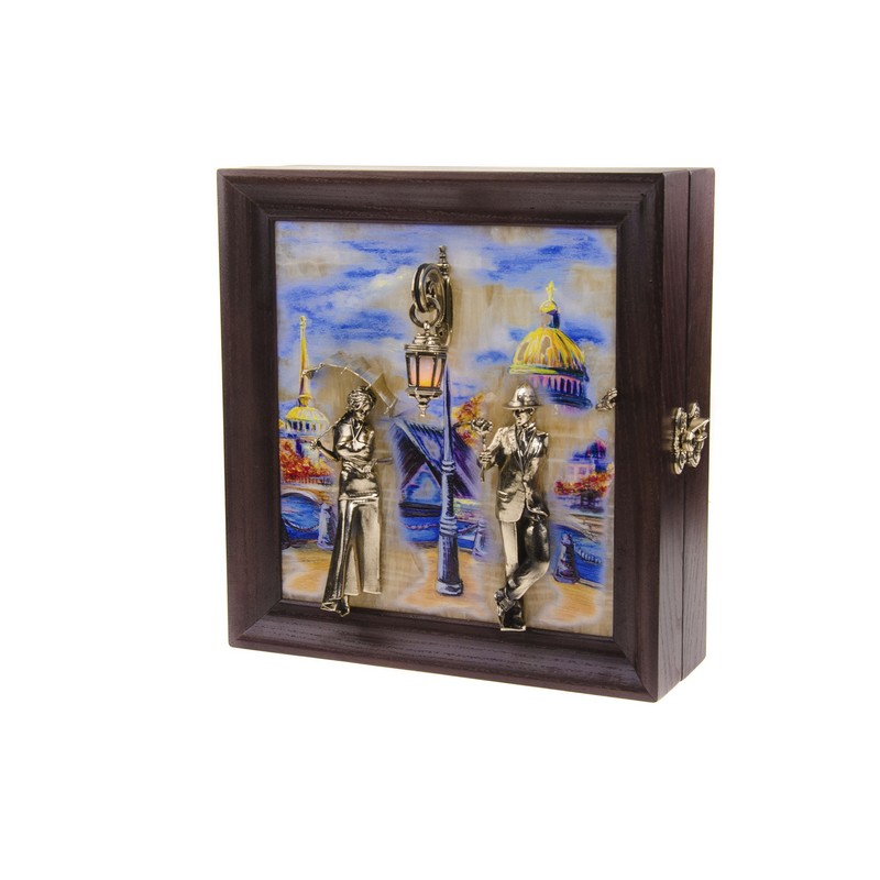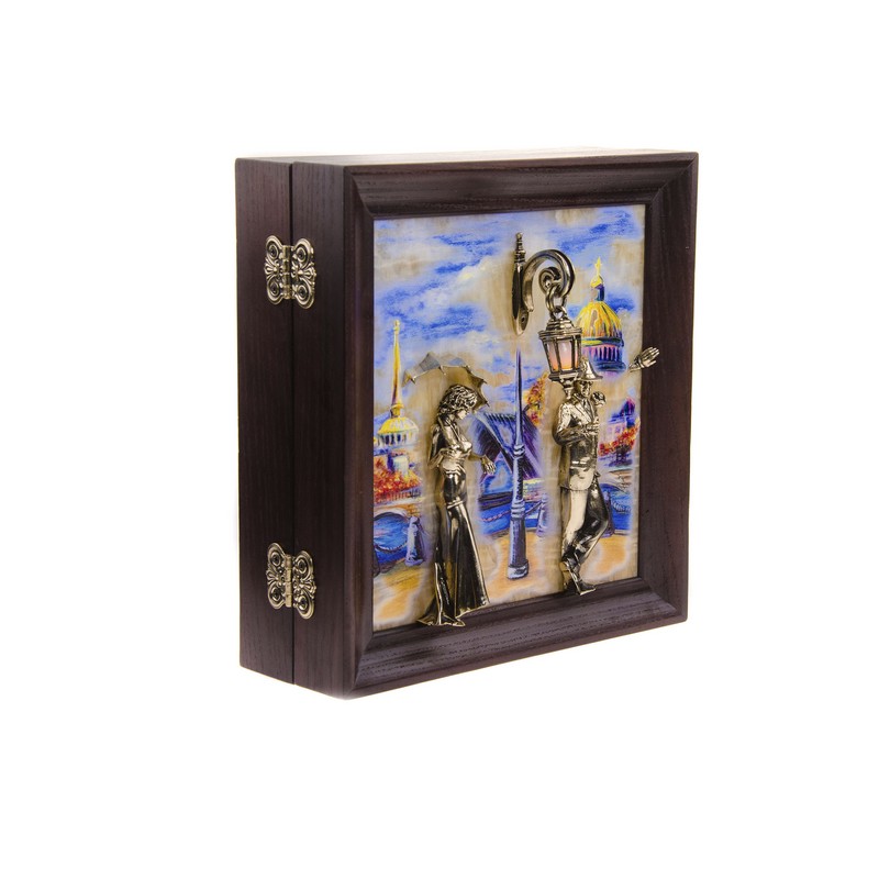 Áðîíçîâàÿ êëþ÷íèöà íàñòåííàÿ "Âå÷åðíÿÿ ïðîãóëêà. Ìîñò" ñ ïîäñâåòêîé