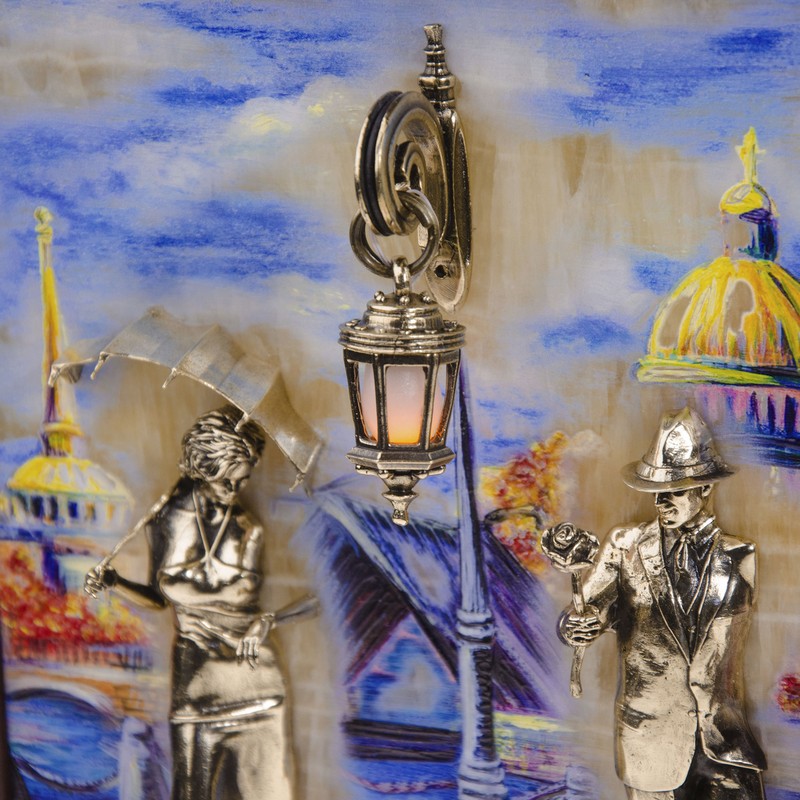 Áðîíçîâàÿ êëþ÷íèöà íàñòåííàÿ "Ïàðà. Íàáåðåæíàÿ. Ìîñò" ñ ïîäñâåòêîé