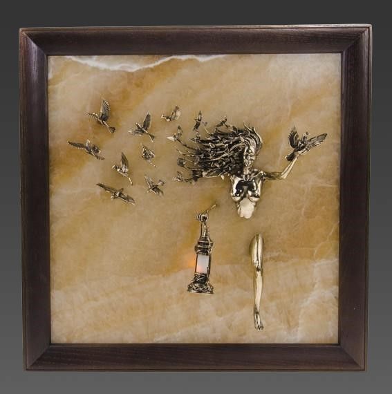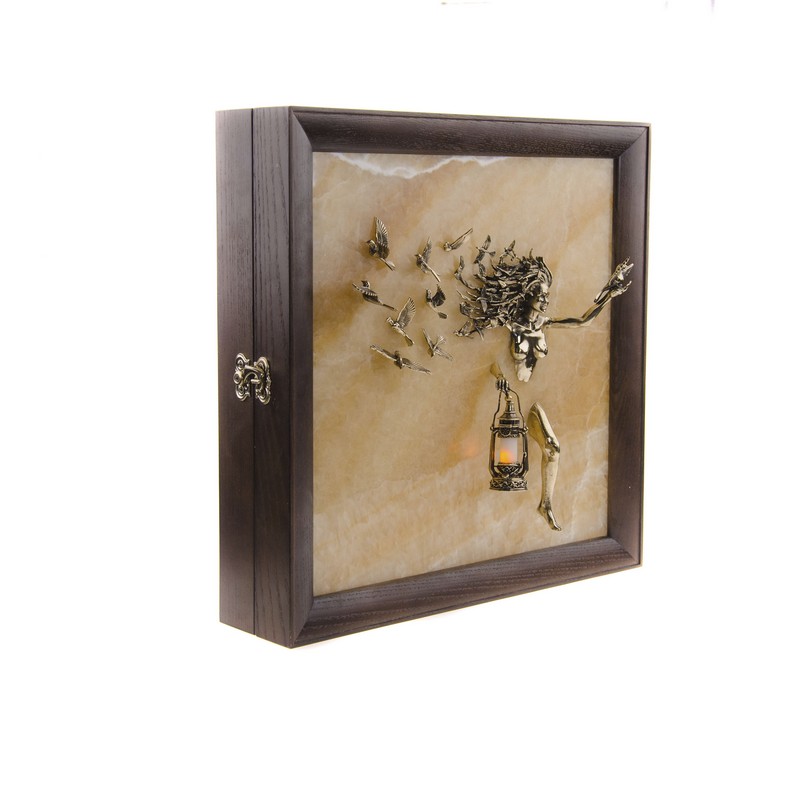 Óäèâèòåëüíàÿ êëþ÷íèöà â âèäå îáúåìíîé êàðòèíû ñ íàñòîÿùåé ïîäñâåòêîé, âîñõèùàþùàÿ ãëóáèíîé ñþæåòà. Íåîáûêíîâåííîé êðàñîòû îáíàæåííàÿ äåâóøêà, ñëîâíî âûõîäÿùàÿ èç êàìíÿ, îñâåùàåò ñâîé ïóòü ôîíàðåì, ñòîèò òðîíóòü êîòîðûé, êàðòèíà íàïîëíèòñÿ òåïëûì ìåðöàþùèì ñâåòîì, ÷òî ñäåëàåò êîìïîçèöèþ åùå áîëåå âîëøåáíîé, à èíòåðüåð, óêðàøåííûé ýòîé êëþ÷íèöåé, íàïîëíèòñÿ óþòîì. Âîëîñû ãåðîèíè, ðàçâåâàþùèåñÿ íà âåòðó, ïðåâðàùàþòñÿ â óëåòàþùóþ ñòàþ ïòèö, ñëîâíî áûëûå âîñïîìèíàíèÿ ïîêèäàþò åå, îñòàâëÿÿ ìåñòî íîâûì ñîáûòèÿì. |