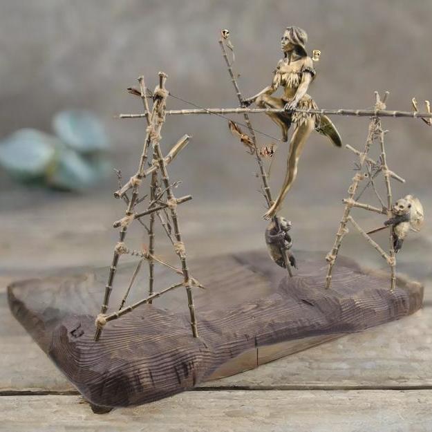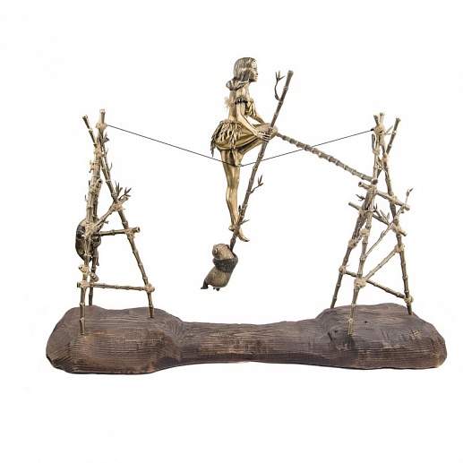 Ýòà î÷àðîâàòåëüíàÿ áðîíçîâàÿ êîìïîçèöèÿ «Áàëàíñèðóþùàÿ äåâóøêà ñ ïàíäîé» ïðåäñòàâëÿåò äåâóøêó, óâåðåííî áàëàíñèðóþùóþ íà êàíàòå ñ áàìáóêîì â ðóêàõ. Íèæå åå, äâå èãðèâûå ïàíäû ðàçâëåêàþòñÿ, ïðèäàâàÿ ñöåíå îñîáóþ æèâîñòü è íåïîñðåäñòâåííîñòü. Ïðîèçâåäåíèå èñêóññòâà âåëèêîëåïíî ïåðåäàåò ëåãêîñòü è ãðàöèîçíîñòü äâèæåíèé äåâóøêè, à òàêæå íåñåò â ñåáå àòìîñôåðó èãðû è ðàäîñòè îò îáùåíèÿ ñ ïðèðîäîé. Ýòà êîìïîçèöèÿ áóäåò èäåàëüíûì ïîäàðêîì äëÿ ëþáèòåëåé èçûñêàííîãî èñêóññòâà è ïðèðîäû. |