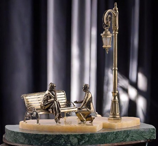Íåïðåâçîéäåííîå ïðîèçâåäåíèå èñêóññòâà, ñèìâîëèçèðóþùåå ñàìûé òðåïåòíûé è ðîìàíòè÷íûé ìîìåíò â îòíîøåíèÿõ — áðîíçîâàÿ êîìïîçèöèÿ Ïðåäëîæåíèå. Ýòî âåëèêîëåïíîå èçäåëèå èç èçûñêàííîãî ìàòåðèàëà îæèâëÿåò ñöåíó, â êîòîðîé ìóæ÷èíà äåëàåò ïðåäëîæåíèå ðóêè è ñåðäöà ñâîåé ëþáèìîé íà ñêàìåéêå ó ôîíàðíîãî ñòîëáà. ×óâñòâà è ýìîöèè çàñòûâàþò â áðîíçå, îòêðûâàÿ ïðàêòè÷åñêè áåñêîíå÷íûå âîçìîæíîñòè äëÿ âäîõíîâåíèÿ è ðàçìûøëåíèé. Ýòî èäåàëüíûé ïîäàðîê äëÿ ëþáèòåëåé èçûñêàííîãî èñêóññòâà, êîëëåêöèîíåðîâ è òåõ, êòî öåíèò âå÷íóþ êðàñîòó è ýëåãàíòíîñòü. ×àðóþùàÿ áðîíçîâàÿ êîìïîçèöèÿ Ïðåäëîæåíèå ñòàíåò ïðåêðàñíûì óêðàøåíèåì èíòåðüåðà ëþáîãî ïîìåùåíèÿ è íåçàáûâàåìûì ïîäàðêîì íà þáèëåé èëè ãîäîâùèíó ñâàäüáû. Ïî÷óâñòâóéòå èñòîðèþ, çàìåðøóþ â áðîíçå! |