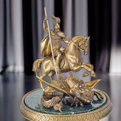 Çàâîðàæèâàþùàÿ áðîíçîâàÿ ñêóëüïòóðíàÿ êîìïîçèöèÿ «Ãåîðãèé Ïîáåäîíîñåö» — ýòî îñîáåííàÿ íàõîäêà äëÿ öåíèòåëåé èñêóññòâà è êîëëåêöèîíåðîâ. Ãåîðãèé Ïîáåäîíîñåö — îäèí èç ñàìûõ óçíàâàåìûõ è óâàæàåìûõ ñâÿòûõ â ïðàâîñëàâèè, îñîáåííî ïðîñëàâëåííûé ñâîåé õðàáðîñòüþ è îòâàãîé. Ýòîò âåëèêèé ìó÷åíèê âñÿ÷åñêè çàùèùàë õðèñòèàíñòâî è îáùå÷åëîâå÷åñêèå öåííîñòè, çà ÷òî è áûë âîçíåñåí íà íåáåñà. Åãî îáðàç, âîïëîùåííûé â áðîíçå, áóäåò îòëè÷íûì óêðàøåíèåì âàøåãî äîìà èëè îôèñà, âíåñåò â ïðîñòðàíñòâî èñòîðè÷åñêóþ àòìîñôåðó, äóõ âåëè÷èÿ è ñâÿòîñòè. Ñêóëüïòóðà âûïîëíåíà èç áðîíçû — ìàòåðèàëà, ñèìâîëèçèðóþùåãî ïðî÷íîñòü è âå÷íîñòü, ÷òî èäåàëüíî îòðàæàåò õàðàêòåð ñâÿòîãî — íåïîêîëåáèìîãî è âåðíîãî ñâîåìó äåëó äî êîíöà. |