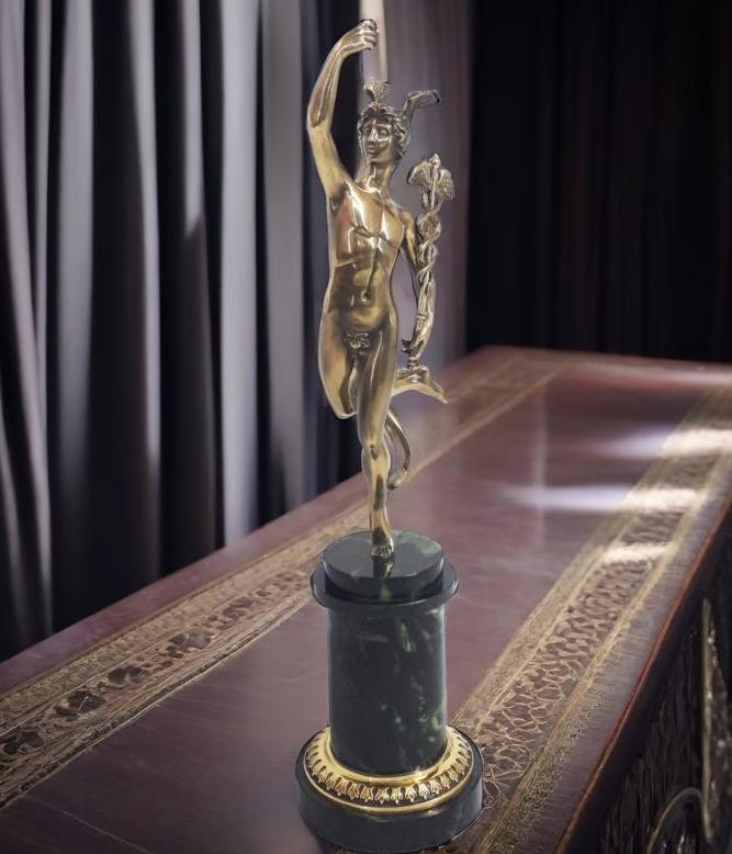 Óêðàñüòå ñâîé äîì èëè îôèñ áðîíçîâîé ñòàòóýòêîé Áîã òîðãîâëè Ìåðêóðèé (Ãåðìåñ). Ýòîò èçÿùíûé ïðåäìåò äåêîðà ïîä÷åðêíåò âàøó óòîí÷åííîñòü è õîðîøèé âêóñ, à òàêæå ïðèíåñåò óäà÷ó â äåëàõ. Ñòàòóýòêà èçãîòîâëåíà èìååò âûñîêîå êà÷åñòâî èñïîëíåíèÿ è äåòàëüíî ïåðåäàåò âñå àòðèáóòû Ìåðêóðèÿ — îò êðûëàòûõ áîòèíîê äî êàäóöåÿ â åãî ðóêå.