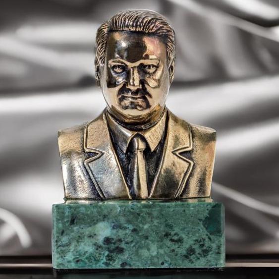 Ñòàòóýòêà â âèäå áþñòà Áîðèñà Íèêîëàåâè÷à Åëüöèíà - ïåðâîãî ïðåçèäåíòà Ðîññèéñêîé Ôåäåðàöèè, êîòîðûé âîøåë â èñòîðèþ êàê ðàäèêàëüíûé ðåôîðìàòîð ïîëèòè÷åñêîãî è ýêîíîìè÷åñêîãî óñòðîéñòâà Ðîññèè, âñåíàðîäíî èçáðàííîãî ãëàâîé ñòðàíû. Âðåìÿ ïðàâëåíèÿ Åëüöèíà îçíàìåíîâàëîñü ïðèâàòèçàöèåé, ëèáåðàëèçàöèåé öåí, ïîïûòêàìè èìïè÷ìåíòà, ïåðâîé ÷å÷åíñêîé âîéíîé, äåôîëòîì â 1998 ãîäó è äðóãèìè ñîáûòèÿìè. |