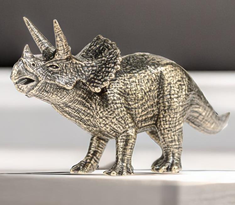 Ñòàòóýòêà â âèäå äèíîçàâðà òðèöåðàòîïñà - ðàñòèòåëüíîÿäíîãî äèíîçàâðà, ñóùåñòâîâàâøåãî îêîëî 68 ìèëëèîíîâ ëåò íàçàä íà òåððèòîðèÿõ ñîâðåìåííîé Ñåâåðíîé Àìåðèêè. Ïðèìå÷àòåëüíî, ÷òî ïîëíûé ñêåëåò òðèöåðàòîïñà äî ñèõ ïîð íå íàéäåí, ëèøü ìíîæåñòâî ÷àñòè÷íûõ ñêåëåòîâ, à ìîìåíò îòêðûòèÿ äàííîãî âèäà äàòèðîâàí 1887 ãîäîì. Òàêæå äî ñèõ ïîð âåäóòñÿ è äèñêóññèè êàñàòåëüíî òî÷íîãî âíåøíåãî âèäà äèíîçàâðà è ïðåäíàçíà÷åíèÿ íàðîñòîâ è ðîãîâ íà åãî ãîëîâå. Èçíà÷àëüíî ñ÷èòàëîñü, ÷òî îíè íóæíû äëÿ îáîðîíû îò íàïàäåíèÿ õèùíèêîâ, îäíàêî, èìåþòñÿ ìíåíèÿ, ÷òî èõ èñòèííàÿ ôóíêöèÿ çàêëþ÷àåòñÿ â óõàæèâàíèè è äëÿ áîðüáû ñ ñîðîäè÷àìè. Ñòàòóýòêà ïîñëóæèò çàìå÷àòåëüíûì ýêçåìïëÿðîì â êîëëåêöèþ óâëå÷åííûõ ïàëåîíòîëîãîâ. |