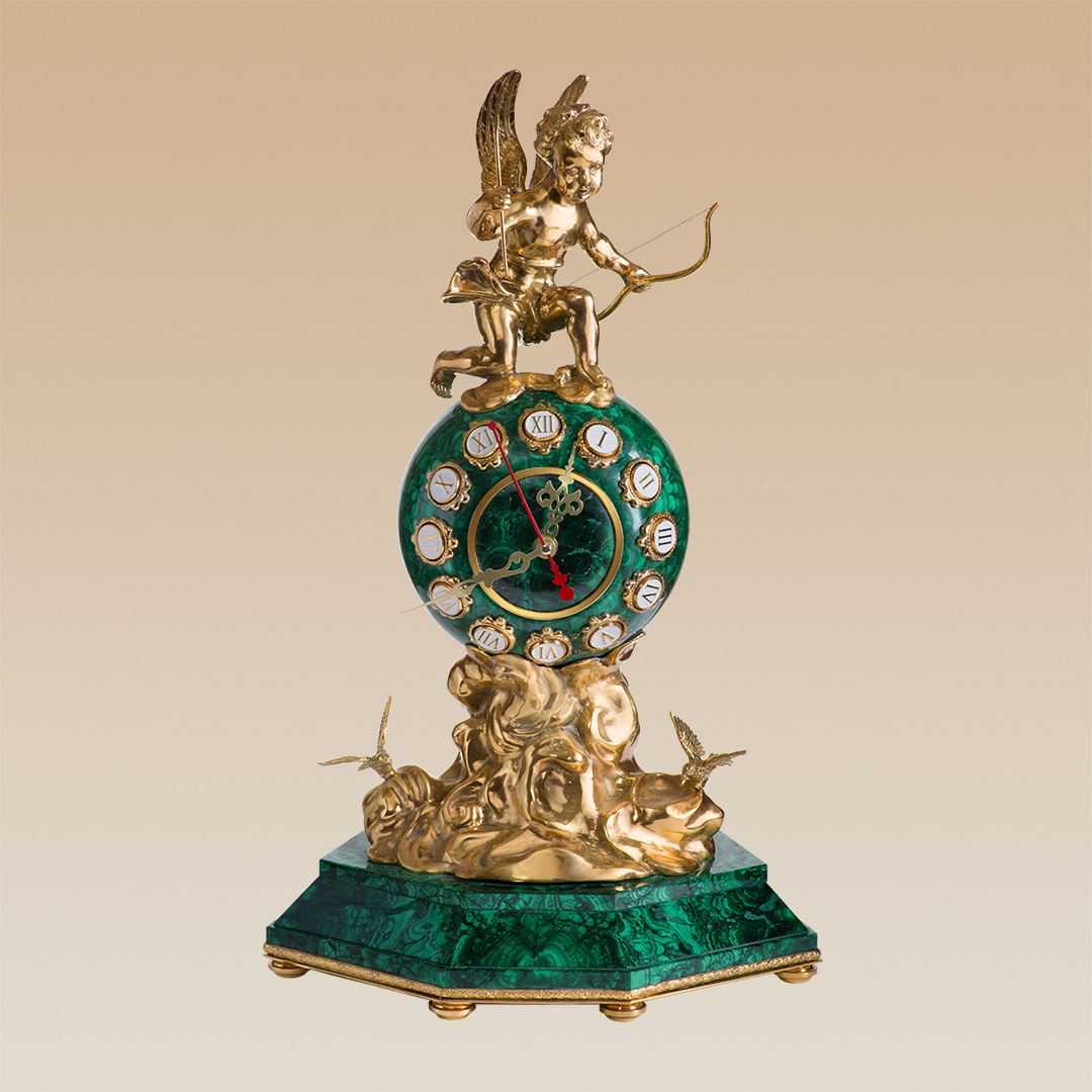 Êàìèííûå êàíäåëÿáðû ñ ÷àñàìè èç ìàëàõèòà