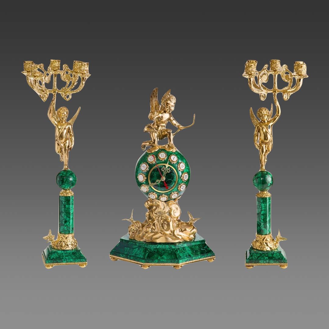 Ýòè êàìèííûå êàíäåëÿáðû ñ ÷àñàìè âûïîëíåíû èç ðîñêîøíîãî ìàëàõèòà è óêðàøåíû ïîçîëî÷åííûìè áðîíçîâûìè ñòàòóýòêàìè àíãåëîâ. Íàáîð ñîñòîèò èç ýëåãàíòíûõ ÷àñîâ è äâóõ êàíäåëÿáðîâ ïî 5 ñâå÷åé. Îíè ïðèäàäóò âàøåìó èíòåðüåðó îñîáåííûé øàðì è èçûñêàííîñòü. Îòëè÷íûé ïîäàðîê äëÿ öåíèòåëåé êëàññè÷åñêîãî ñòèëÿ è ðîñêîøè. |