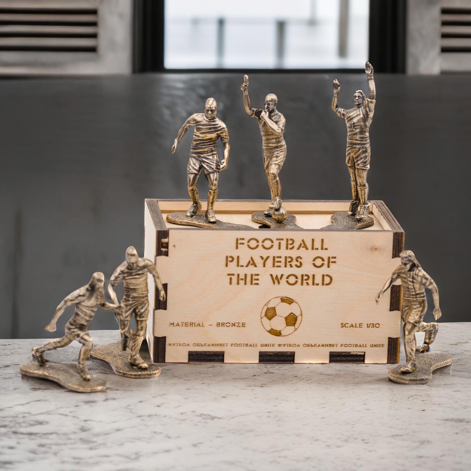 Ïðåäñòàâëÿåì âàøåìó âíèìàíèþ áðîíçîâûé íàáîð ôóòáîëèñòîâ! Ñïåöèàëüíî äëÿ íàñòîÿùèõ öåíèòåëåé ôóòáîëà è êîëëåêöèîíåðîâ óíèêàëüíûõ òîâàðîâ. Íàáîð âêëþ÷àåò â ñåáÿ øåñòü âåëèêîëåïíî âûïîëíåííûõ ñòàòóýòîê èç áðîíçû, êàæäàÿ èç êîòîðûõ ïðåäñòàâëÿåò ñîáîé çàìå÷àòåëüíûé îáðàç çíàìåíèòîãî ôóòáîëèñòà.