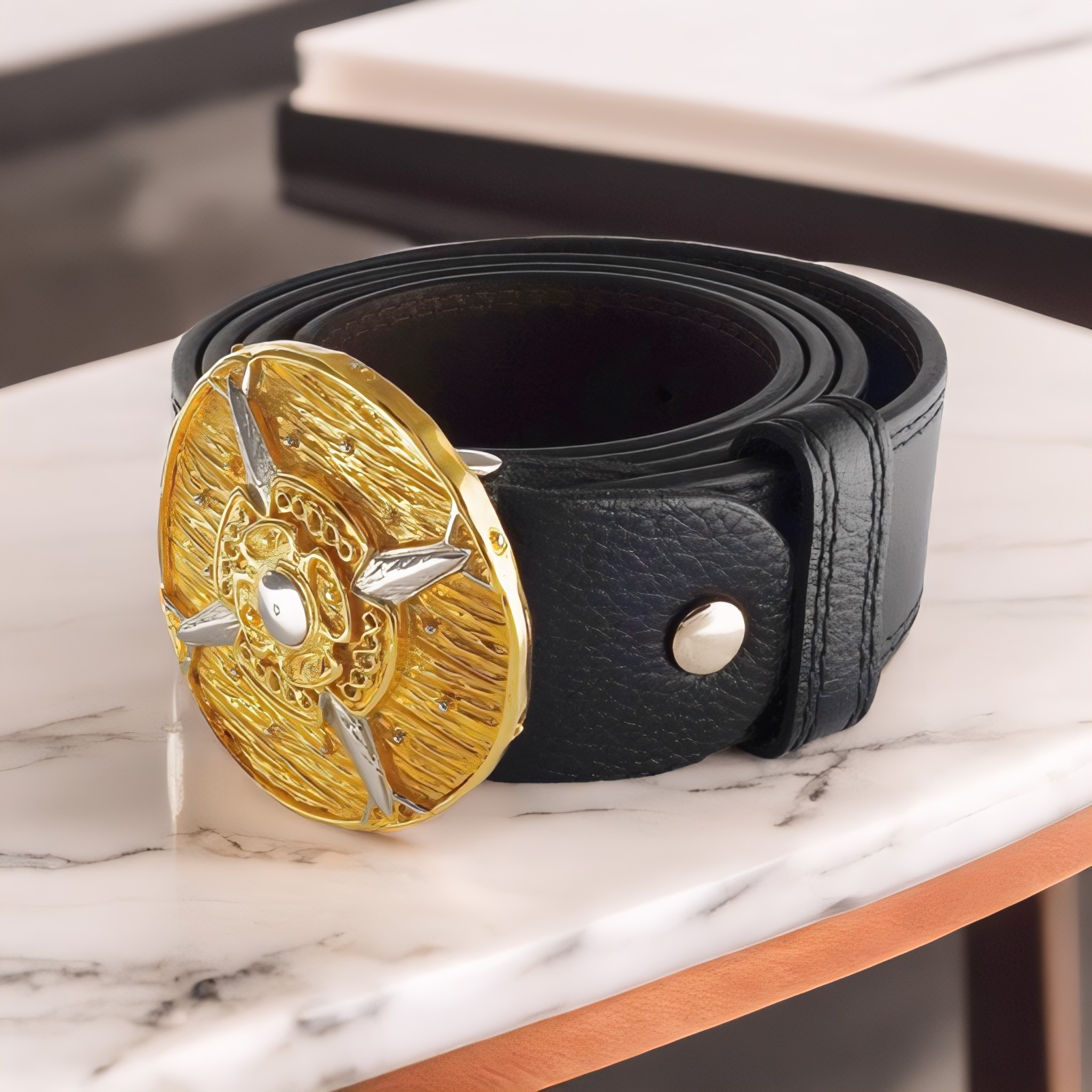 Âåðøèíà ýëåãàíòíîñòè è ñòèëÿ — êðàñèâûé ðåìåíü èç êîæè ñî øòðèõîì â äåòàëè. Ñëàâÿùèéñÿ ñâîåé ïðî÷íîñòüþ è äîëãîâå÷íîñòüþ, îí ñòàíåò íà䏿íûì ïîìîùíèêîì íà ìíîãèå ãîäû. Ýêñêëþçèâíûå äåòàëè Íî íàñòîÿùåé èçþìèíêîé ÿâëÿåòñÿ ïðÿæêà èç áðîíçû — ñäåëàííàÿ â ôîðìå âåëè÷åñòâåííîãî ùèòà è ïîêðûòàÿ çîëîòîì, îíà êðàñóåòñÿ íà ïåðåäíåé ñòîðîíå àêñåññóàðà è äåëàåò åãî åù¸ áîëåå ýôôåêòíûì.
