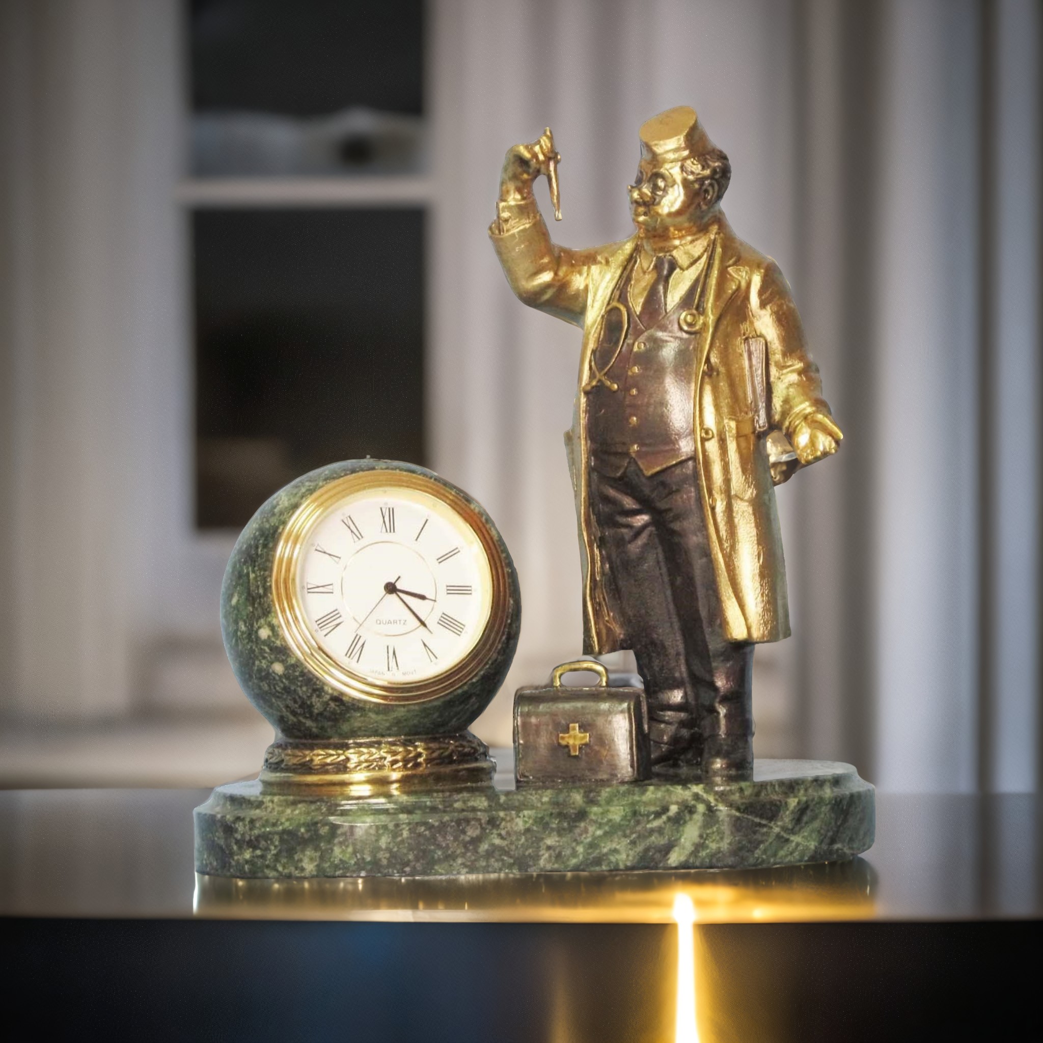 Ïðèâíåñèòå îñîáîå èçÿùåñòâî è ñòèëü â âàø ðàáî÷èé êàáèíåò èëè ãîñòèíóþ ñ íàøèìè óíèêàëüíûìè íàñòîëüíûìè ÷àñàìè èç çìååâèêà ñ áðîíçîâîé ñòàòóýòêîé äîêòîðà. Ýòîò ïðîäóìàííûé ïîäàðîê âûðàçèòåëüíî ïåðåäàåò âàøå óâàæåíèå ê ïðîôåññèè äîêòîðà è îöåíèâàåò åãî âûäàþùèéñÿ âêëàä â îáùåñòâî. Çìååâèê, çàëîã ïðî÷íîñòè è äîëãîâå÷íîñòè, ïðèäàåò ÷àñàì íåïîâòîðèìóþ êðàñîòó è áëàãîðîäñòâî. Áðîíçîâàÿ ñòàòóýòêà äîêòîðà âûïîëíåíà ñ âûñîêèì óðîâíåì äåòàëèçàöèè, ÷òî äåëàåò ýòîò ñóâåíèð ïî-íàñòîÿùåìó öåííûì è çíà÷èìûì.