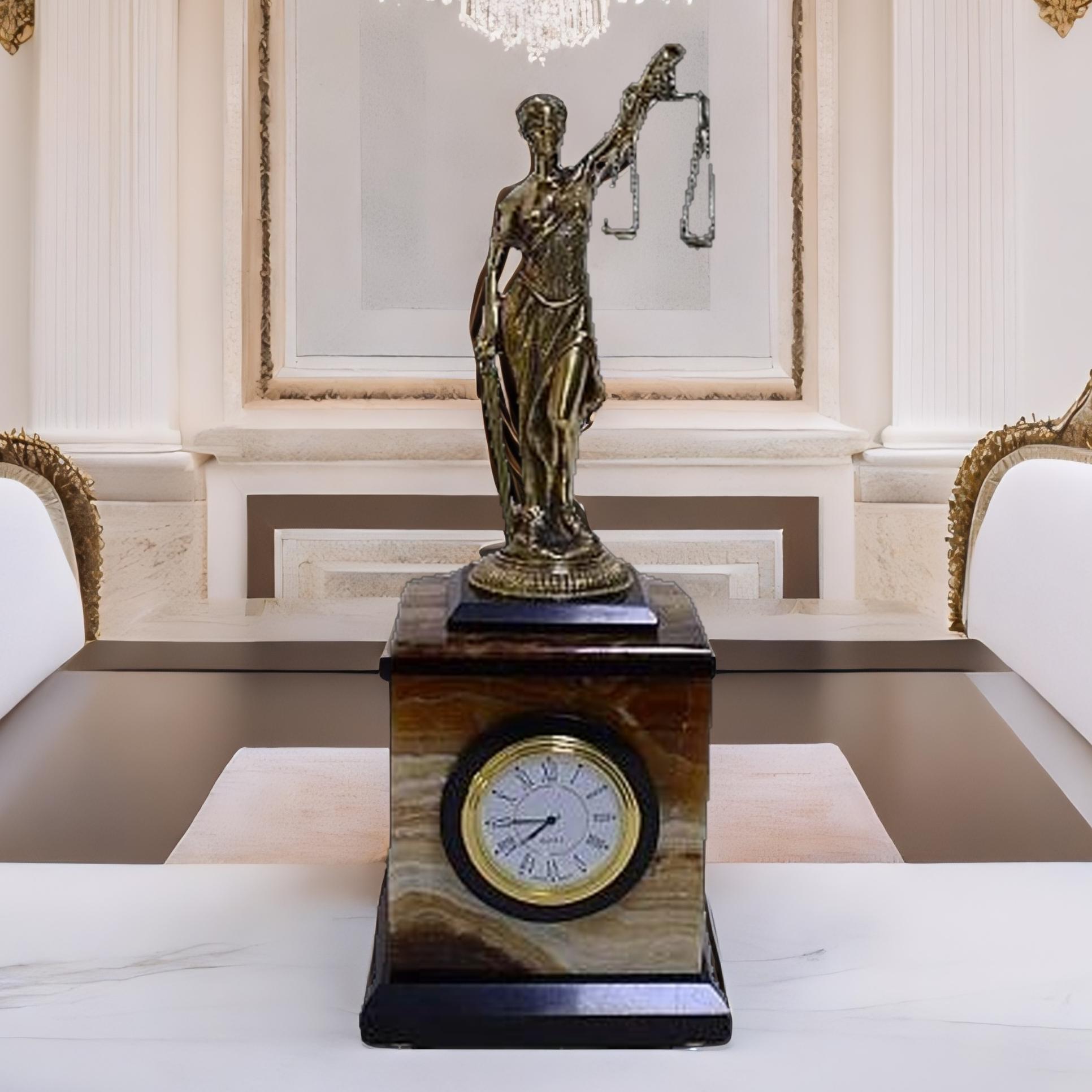 Ìû ðàäû ïðåäñòàâèòü âàøåìó âíèìàíèþ äâà óíèêàëüíûõ èçäåëèÿ, êîòîðûå ïðåâðàòÿò âàø ðàáî÷èé ñòîë â íàñòîÿùåå ïðîèçâåäåíèå èñêóññòâà — íàñòîëüíûå ÷àñû èç àãàòà è áðîíçîâóþ ñòàòóýòêó Ôåìèäû. Íàñòîëüíûå ÷àñû èç àãàòà íå ïðîñòî ïîêàçûâàþò âðåìÿ, îíè äåêîðèðóþò ïðîñòðàíñòâî, ïðèäàâàÿ åìó ýëåãàíòíîñòü è áëàãîðîäñòâî. Íåïîâòîðèìûé öâåòî÷íûé óçîð â êàìíå è ïåðåëèâû åãî ïîâåðõíîñòè êàæäûé ðàç îòêðûâàþò çàíîâî âåëèêóþ êðàñîòó ïðèðîäíîãî ìèíåðàëà. Áðîíçîâàÿ ñòàòóýòêà Ôåìèäû, áîãèíè ñïðàâåäëèâîñòè, ïðîäåìîíñòðèðóåò âàøåìó îêðóæåíèþ ãëóáîêóþ ïðåäàííîñòü ïðèíöèïàì è èäåàëàì ñïðàâåäëèâîñòè. Òàêàÿ ñòàòóýòêà ñòàíåò óêðàøåíèåì ëþáîãî êàáèíåòà þðèñòà, ñóäüè èëè ëþáîãî ÷åëîâåêà, ïðèäåðæèâàþùåãîñÿ ïðèíöèïîâ ÷åñòíîñòè è áåñïðèñòðàñòíîñòè.
