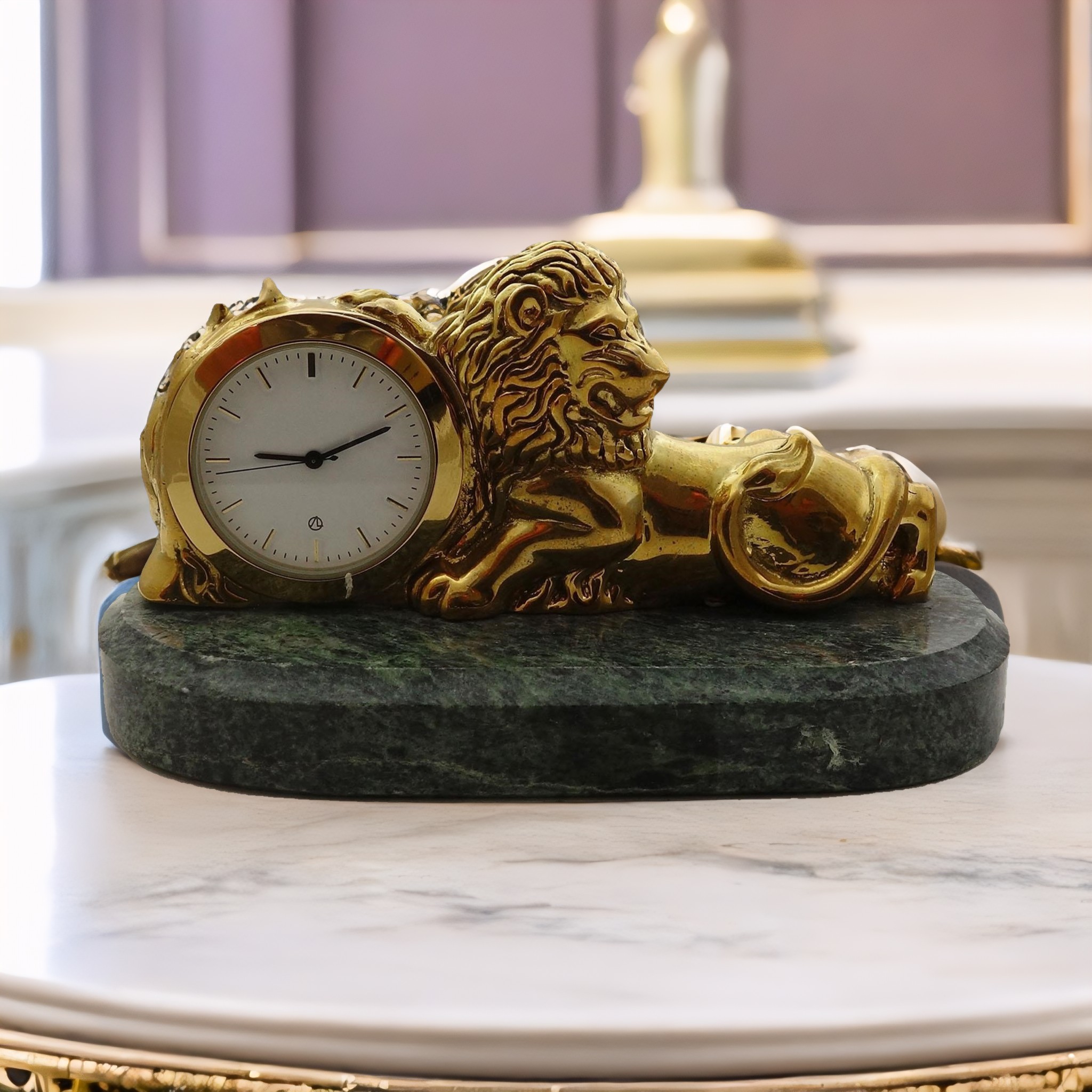Ïðåäñòàâëÿåì Âàøåìó âíèìàíèþ óíèêàëüíûé ñóâåíèð — íàñòîëüíûå ÷àñû. Êðàñèâûé è ìîùíûé ëåâ èç áðîíçû óêðàøàåò öèôåðáëàò ýòèõ ÷àñîâ.