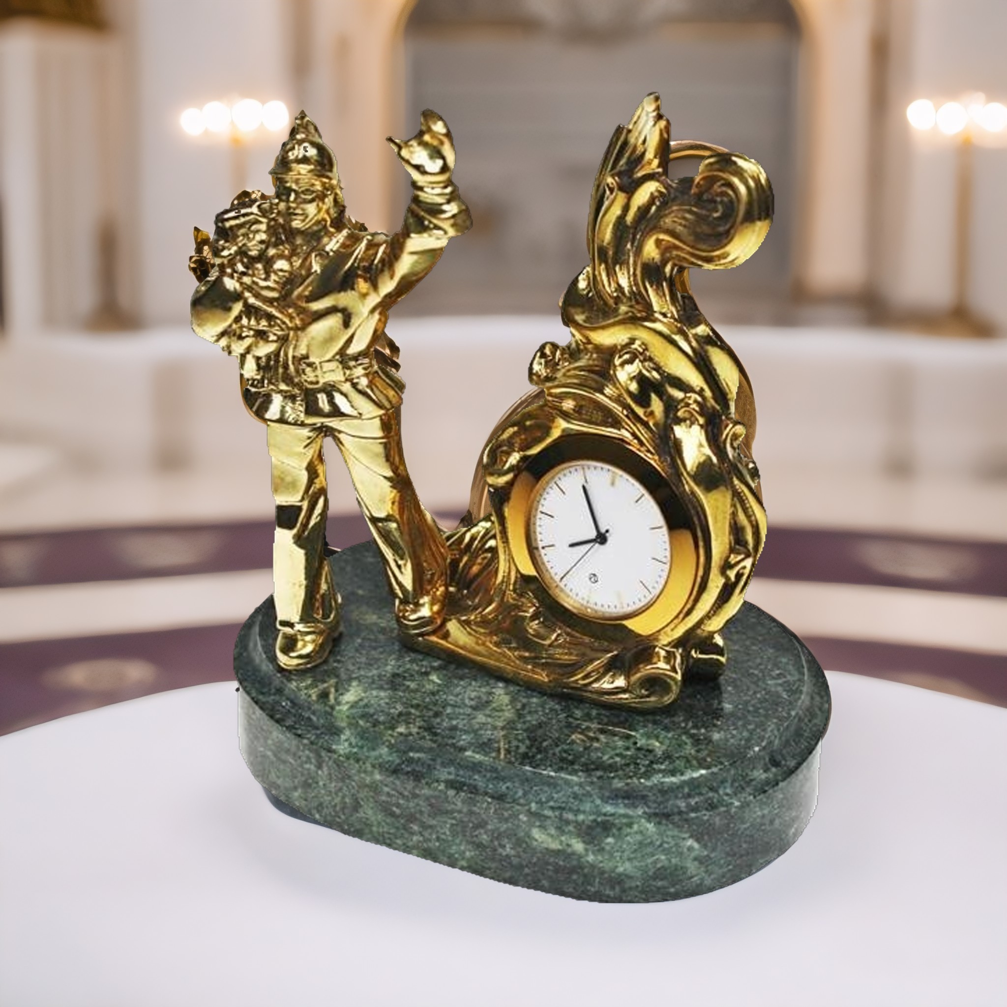 Âû èùåòå ïîäàðîê, çàñëóæèâàþùèé âíèìàíèÿ? Ðàñêðîéòå äëÿ ñåáÿ íàøè ñóâåíèðíûå íàñòîëüíûå ÷àñû, âûïîëíåííûå â óíèêàëüíîé ôîðìå ïîæàðíîãî ñ ðåáåíêîì íà ðóêàõ. Ýòà ðàäóþùàÿ ãëàç ìîäåëü èçãîòîâëåíà âðó÷íóþ èç áðîíçû, óêðàøåííàÿ äî ìåëî÷åé.  òî âðåìÿ êàê îñíîâàíèå ÷àñîâ ñäåëàíî èç âûñîêîêà÷åñòâåííîãî çìååâèêà, îáåñïå÷èâàÿ äîëãîâå÷íîñòü è ñòàáèëüíîñòü.