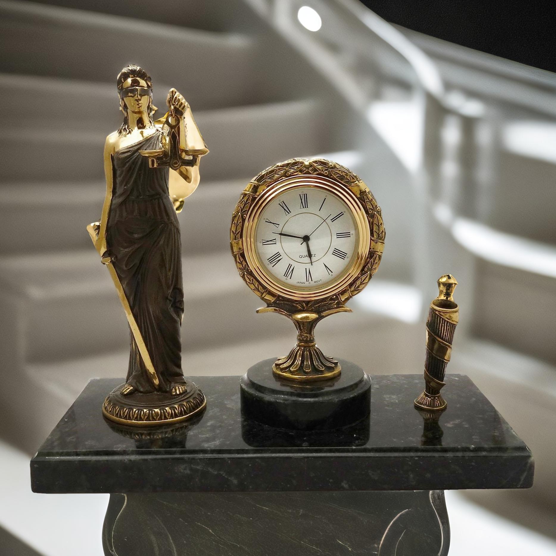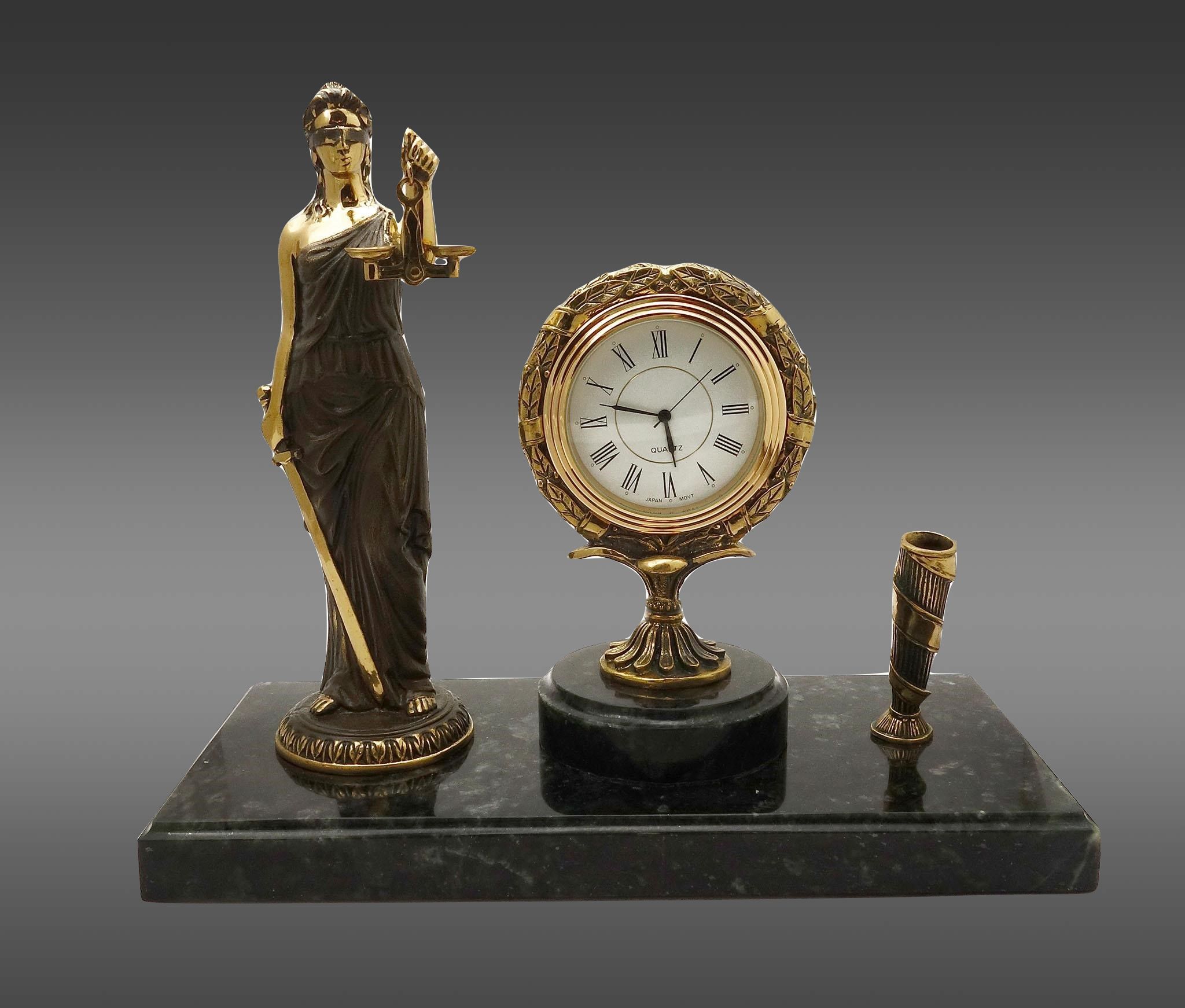 Ïîìèìî ôóíêöèè õðàíåíèÿ ðó÷åê, íà ÷àñàõ åñòü ñòàòóýòêà Ôåìèäû èç áðîíçû, ñèìâîëèçèðóþùàÿ ñïðàâåäëèâîñòü è ìóäðîñòü. Ñòàòóýòêà äîáàâèò ñîëèäíîñòè è îñîáîãî ùåïåòèëüíîãî âíèìàíèÿ ê äåòàëÿì â âàøåì èíòåðüåðå. Ïîäàðèòå ñåáå èëè áëèçêèì ýòîò ùåäðûé ñþðïðèç — ÷àñû ïîäàðî÷íûå íàñòîëüíûå èç çìååâèêà. Ïóñòü êàæäîå âàøèõ äâèæåíèå íàïîìèíàåò î öåííîñòè âðåìåíè. |