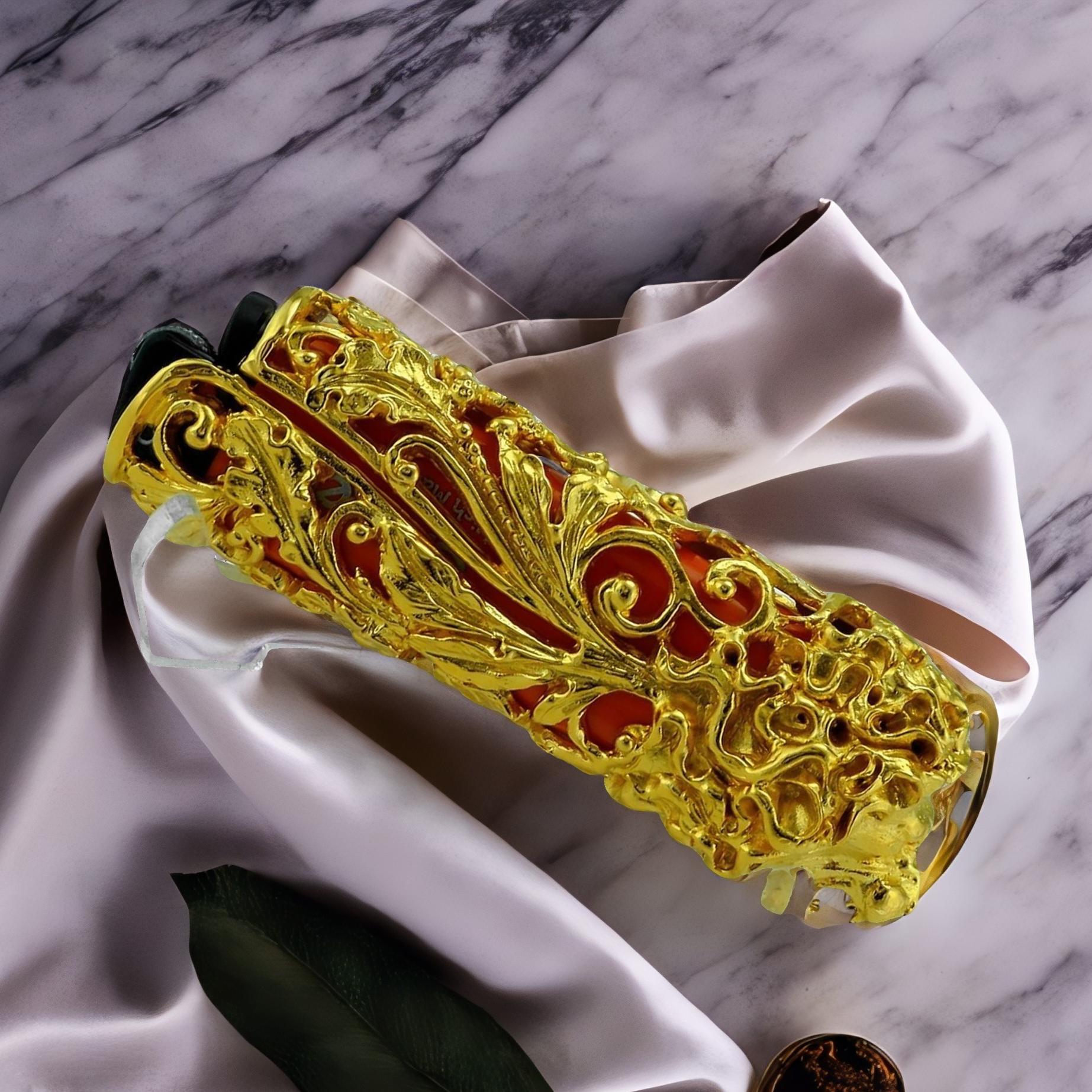 Ïîçîëî÷åííàÿ áðîíçà ïðèäàåò ÷åõëó äëÿ çàæèãàëêè Ëåâ ýñòåòè÷åñêóþ ïðèâëåêàòåëüíîñòü è âûãîäíî ïîä÷åðêèâàåò èçûñêàííîñòü äèçàéíà. |
