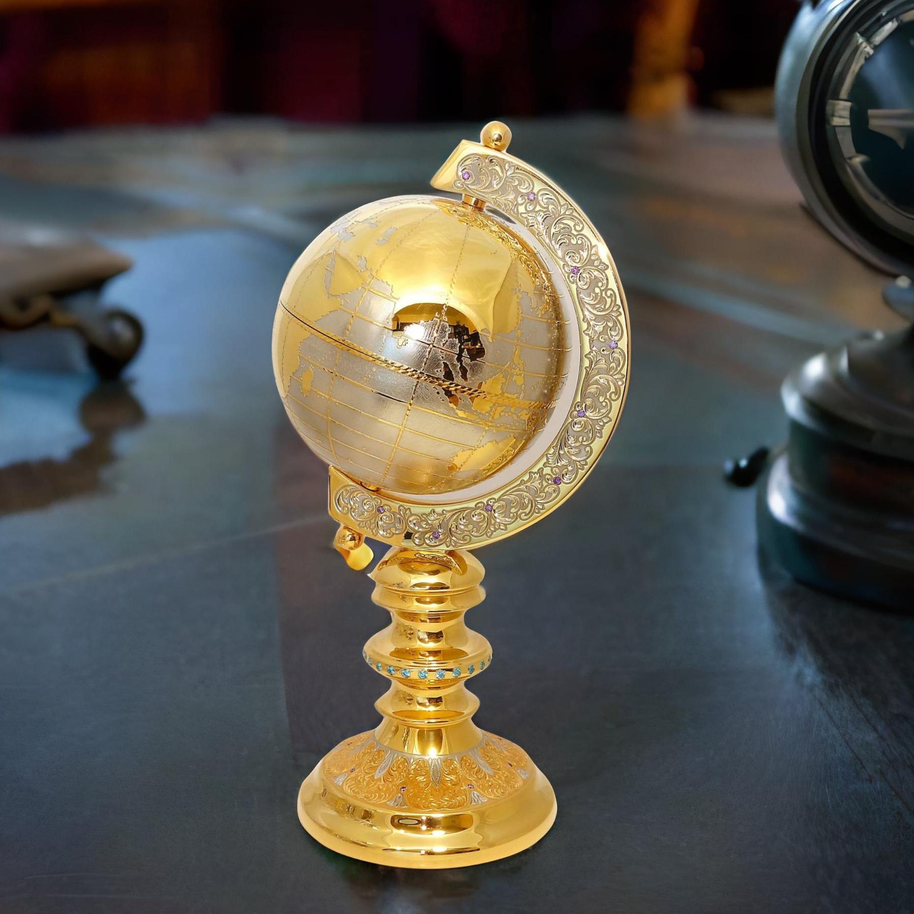 Îòêðîéòå äëÿ ñåáÿ ìèð èçûñêàííîãî èñêóññòâà è êà÷åñòâåííîé ðàáîòû ñ ãëîáóñîì "Çîëîòîé". Ýòîò ïîòðÿñàþùèé àêñåññóàð ñîçäàí äëÿ òåõ, êòî öåíèò ðîñêîøü è ýñòåòè÷åñêîå óäîâîëüñòâèå, è ÿâëÿåòñÿ íàñòîÿùèì ïðîèçâåäåíèåì èñêóññòâà. Ãëîáóñ óêðàøåí þâåëèðíûìè âñòàâêàìè èç ôèàíèòîâ, êîòîðûå èñêðÿòñÿ è èãðàþò íà ñâåòó, ïðèäàâàÿ åìó íåïîâòîðèìîå î÷àðîâàíèå. Çîëîòîå ïîêðûòèå ïðåâðàùàåò ýòîò ãëîáóñ â äåéñòâèòåëüíî óíèêàëüíûé ïðåäìåò, ñïîñîáíûé óêðàñèòü ëþáîé èíòåðüåð è ñòàòü èçóìèòåëüíûì ïîäàðêîì äëÿ äîðîãèõ âàì ëþäåé. Ãëîáóñ "Çîëîòîé" – ýòî íå òîëüêî ýôôåêòíûé ýëåìåíò äåêîðà, íî è ñèìâîë ëþáâè ê ãåîãðàôèè, èñêóññòâó è ðîñêîøè. Îí áóäåò ðàäîâàòü ãëàç è âäîõíîâëÿòü íà íîâûå îòêðûòèÿ, ÿâëÿÿñü ïðåêðàñíûì ïàìÿòíûì ïîäàðêîì èëè ñòèëüíûì óêðàøåíèåì äëÿ äîìàøíåãî èëè ðàáî÷åãî ïðîñòðàíñòâà. |