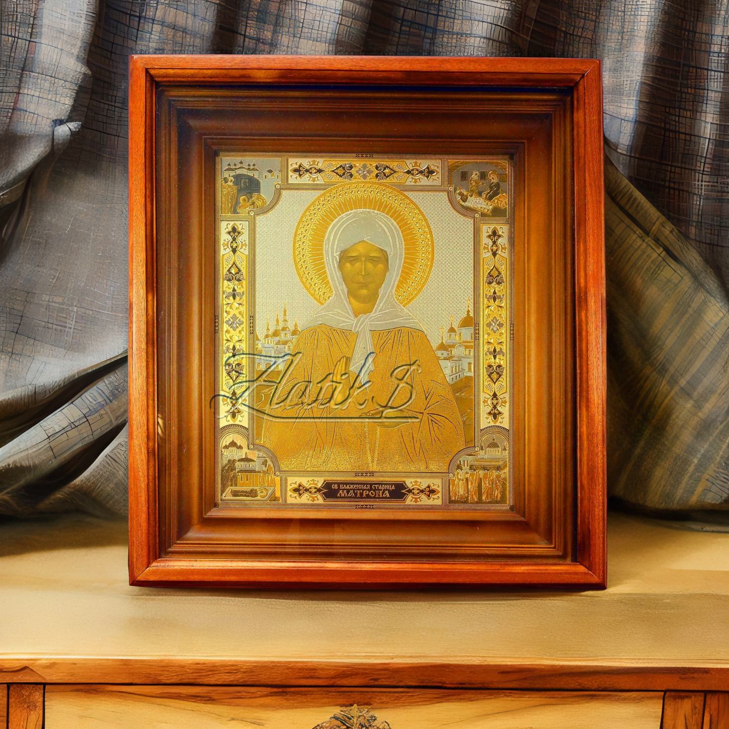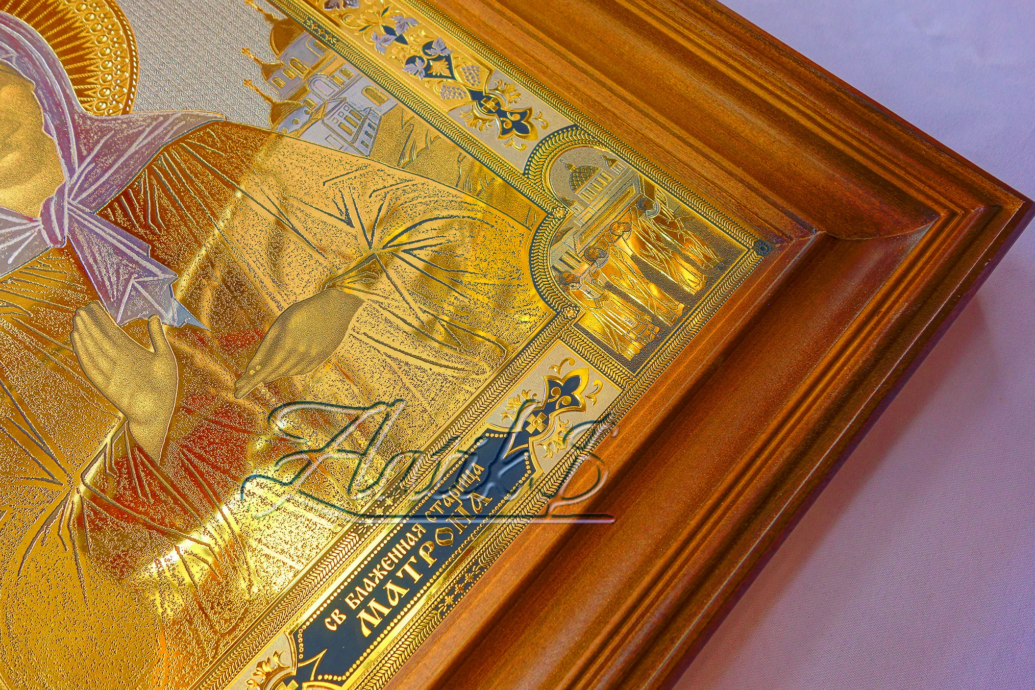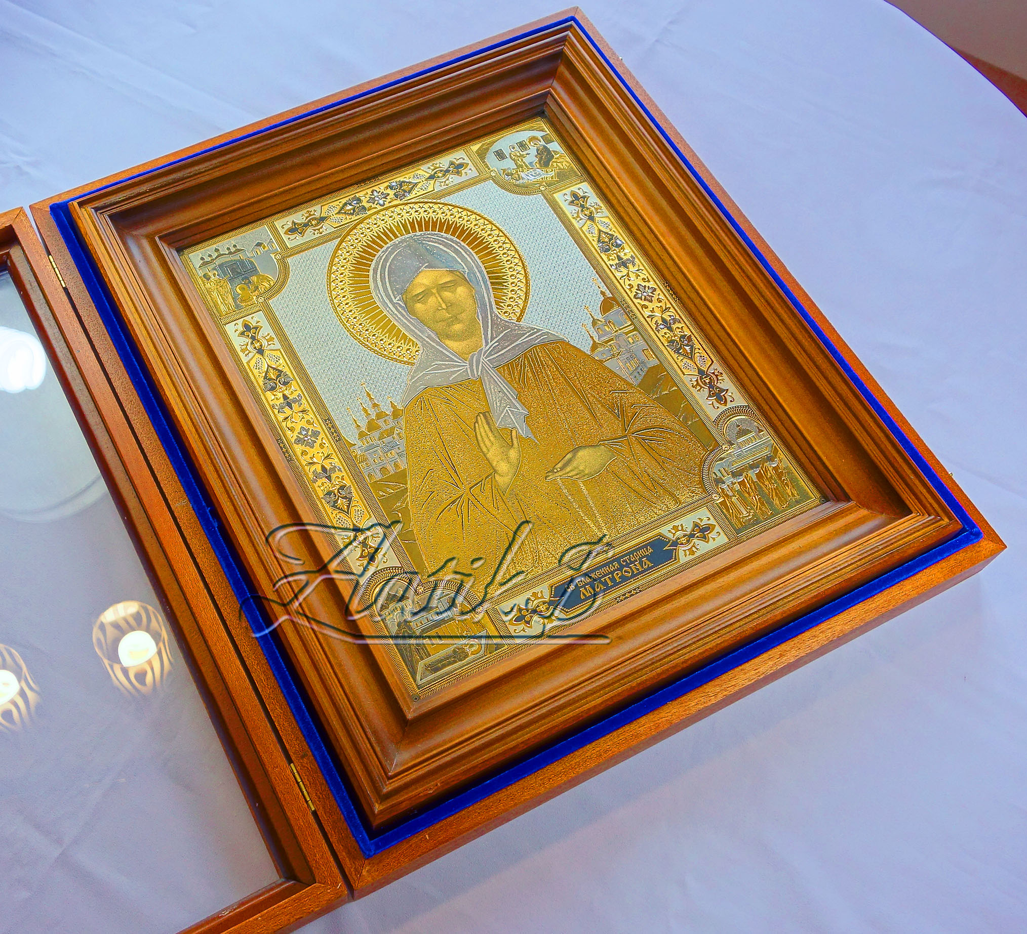 Ýòà èçÿùíàÿ èêîíà ñâÿòîé Ìàòðîíû â êèîòå ÿâëÿåòñÿ èñòèííûì ïðîèçâåäåíèåì èñêóññòâà. Èçãîòîâëåíà ñ ïðèìåíåíèåì ñëîæíîé òåõíèêè ãðàâèðîâêè, çîëî÷åíèÿ è ñåðåáðåíèÿ, ÷òî ïðèäàåò èçäåëèþ óíèêàëüíîñòü è áëåñê. Ïðåäñòàâëåííûé îáðàç ñâÿòîé Ìàòðîíû, âäîõíîâëÿåò è íàïîëíÿåò ïðîñòðàíñòâî áëàãîäàòíîé ýíåðãèåé. Êàæäàÿ äåòàëü ãðàâèðîâêè âûïîëíåíà ñ âûñîêîé òî÷íîñòüþ, ïîä÷åðêèâàÿ ìàñòåðñòâî ñîçäàòåëåé èêîíû. Èêîíà, óñòàíîâëåííàÿ â êèîòå, îáëàäàåò èñêëþ÷èòåëüíîé öåííîñòüþ, êàê â äóõîâíîì, òàê è â õóäîæåñòâåííîì îòíîøåíèè, è ñòàíåò èñòèííûì óêðàøåíèåì âàøåãî äîìà. |