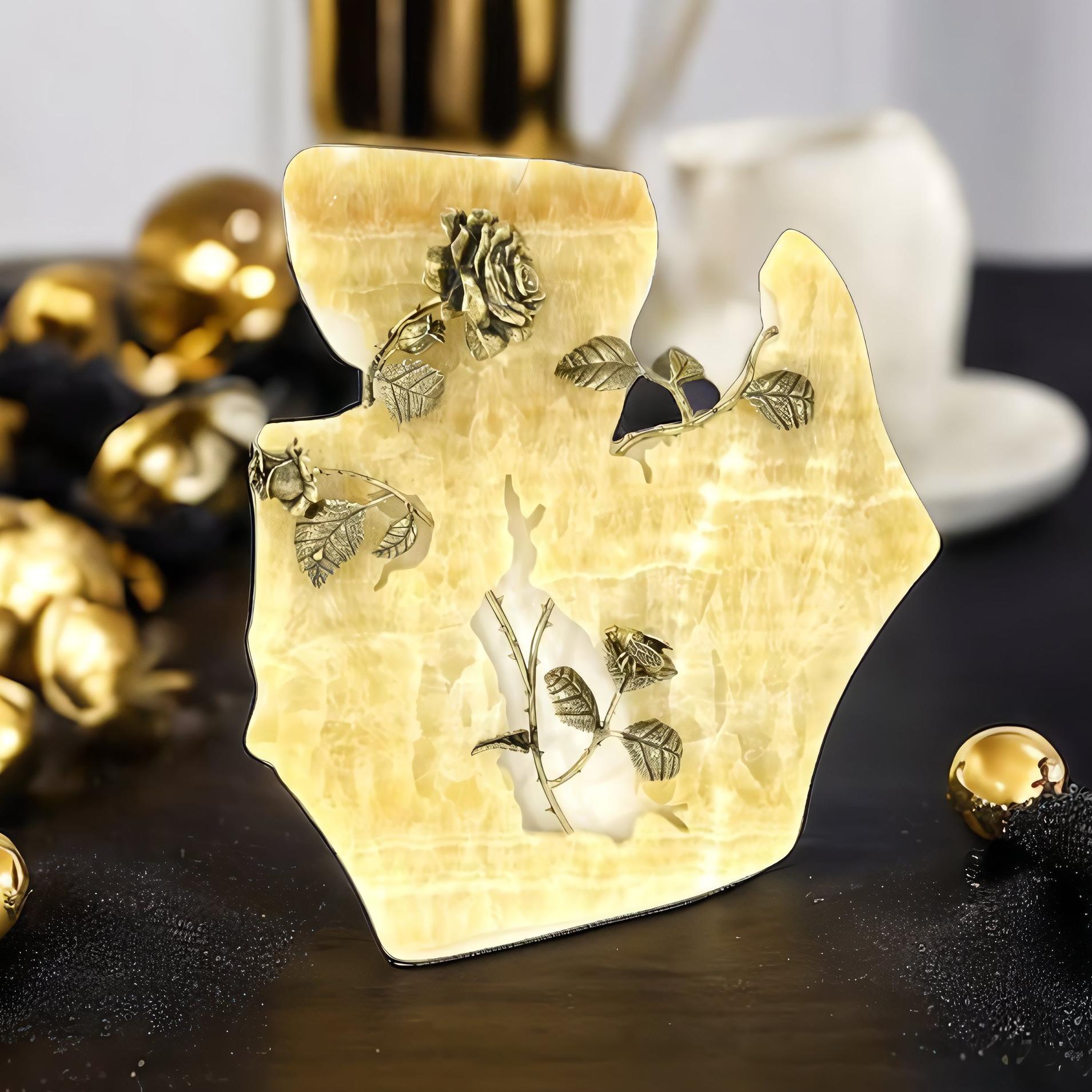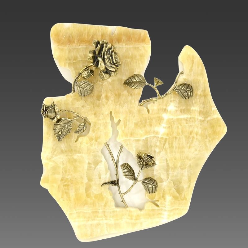 Áðîíçîâàÿ êàðòèíà èç êàìíÿ îíèêñ "Ïàðåíü ñ ðîçîé" ñ ïîäñâåòêîé