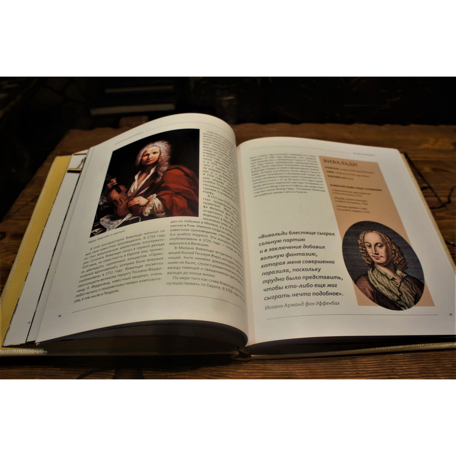 Èùåòå ïîäàðîê äëÿ ëþáèòåëÿ êëàññè÷åñêîé ìóçûêè? Õîòèòå ïîãðóçèòüñÿ â çàõâàòûâàþùèé ìèð âåëèêèõ êîìïîçèòîðîâ è ìóçûêàíòîâ? Íàøà êíèãà — èìåííî òî, ÷òî âàì íóæíî! Èñòîðèÿ ìóçûêè â âàøèõ ðóêàõ. Ýòà êíèãà — íåçàìåíèìûé ðåñóðñ, ïîëíûé èíôîðìàöèè, êîòîðûé ïîìîæåò âàì ðàñøèðèòü ñâîè ïîçíàíèÿ â îáëàñòè ìóçûêè. Ïîãðóçèòåñü â óäèâèòåëüíûé ìèð ìóçûêè, ïîëíûé ãàðìîíèè è êðàñîòû. Óçíàéòå áîëüøå î æèçíè âàøèõ ëþáèìûõ êîìïîçèòîðîâ, è êàê îíè ñîçäàâàëè ñâîè øåäåâðû Áèîãðàôèè âåëèêèõ êîìïîçèòîðîâ è ìóçûêàíòîâ îòêðîþò ïåðåä âàìè òàéíû èõ òâîð÷åñêîãî ïðîöåññà. Çàõâàòûâàþùèå èñòîðèè, êîòîðûå âäîõíîâëÿþò è ïîçâîëÿþò ëó÷øå ïîíÿòü ìóçûêàëüíîå èñêóññòâî. Ýòî íå ïðîñòî êíèãà. Ýòî ïóòåøåñòâèå â ìèð âåëèêèõ ìóçûêàíòîâ, èõ òâîð÷åñòâà, èõ ñòðàñòåé è èõ ìóçûêè. Ïðåêðàñíî âûïîëíåííàÿ, â êîæàíîì ïåðåïë¸òå, ýòî ïðîèçâåäåíèå èñêóññòâà ñàìî ïî ñåáå, èäåàëüíî ïîäîéä¸ò â êà÷åñòâå ïîäàðêà. |