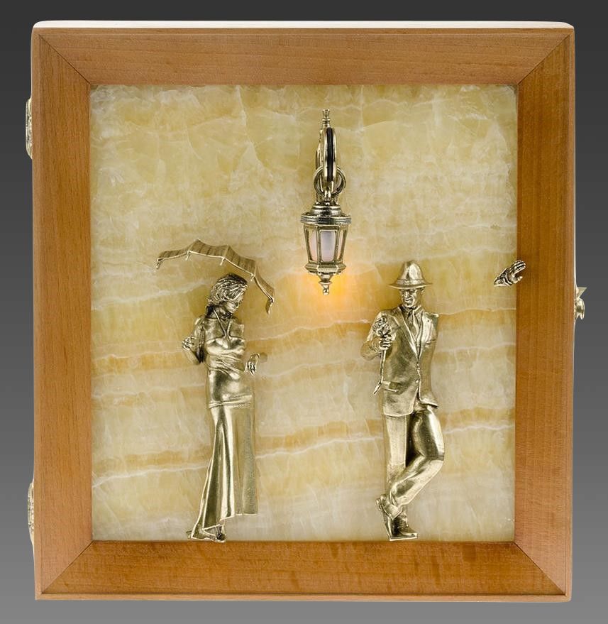 Áðîíçîâàÿ êëþ÷íèöà íàñòåííàÿ "Âå÷åðíÿÿ ïðîãóëêà. Ìîñò" ñ ïîäñâåòêîé