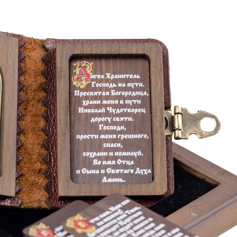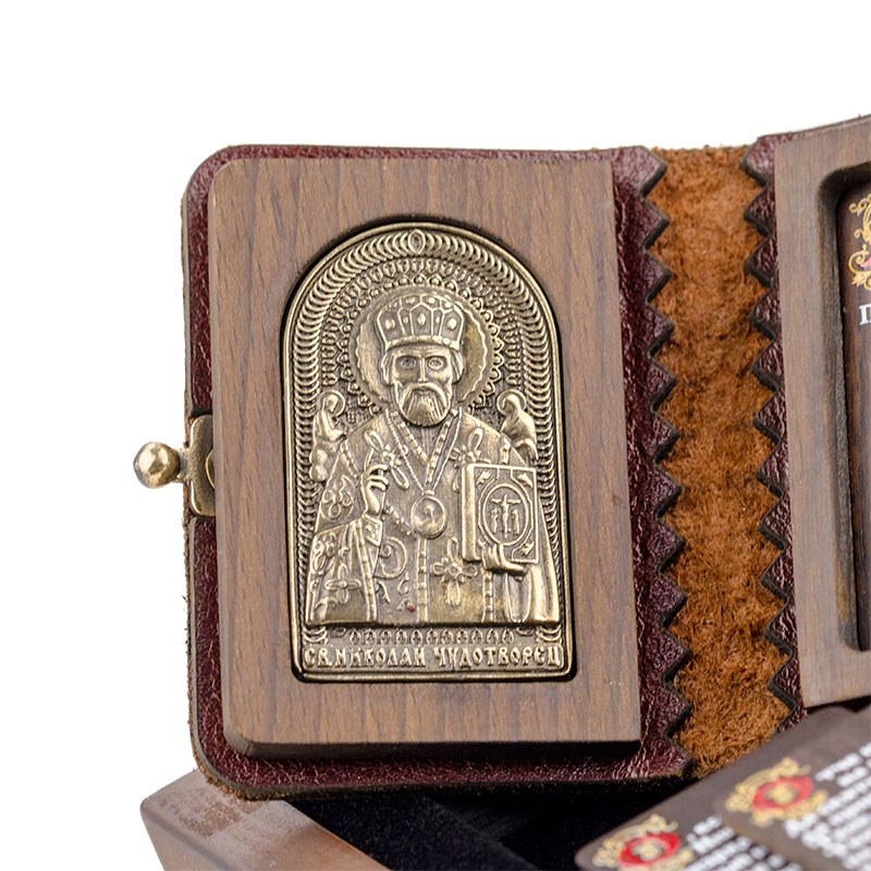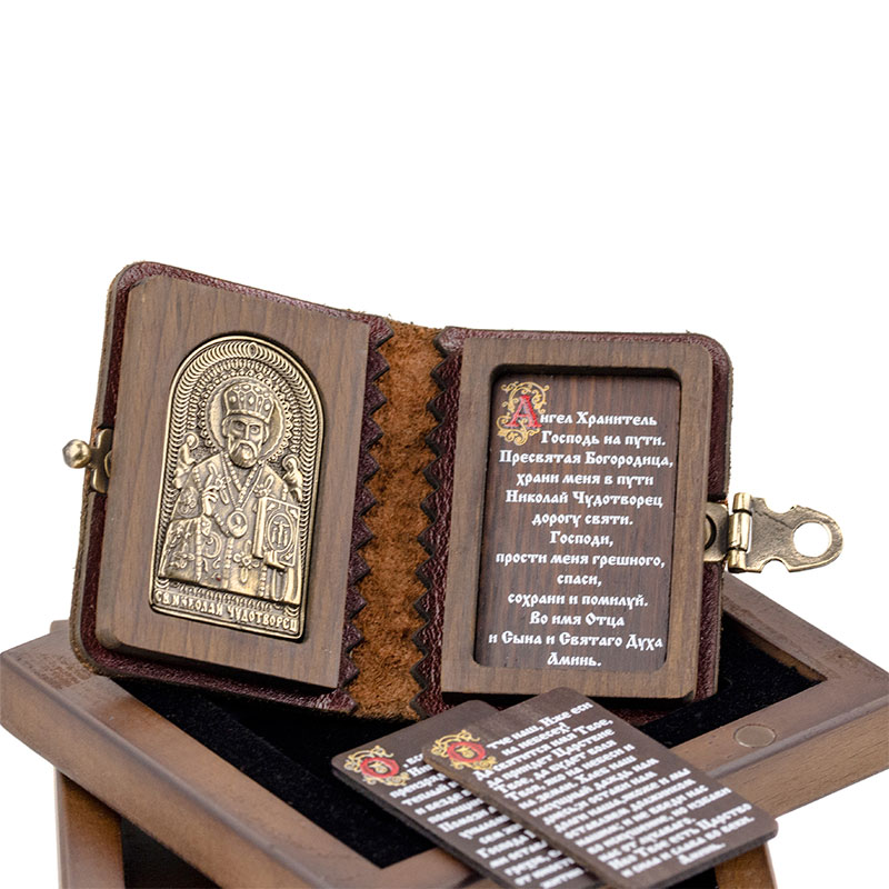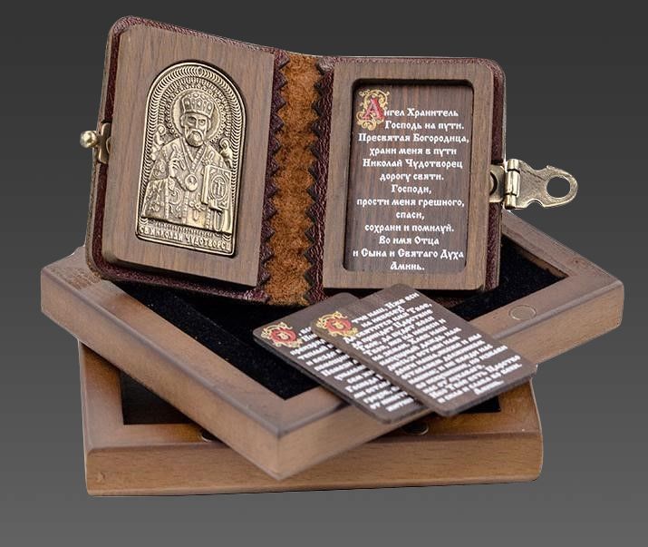 ×óäåñíàÿ êíèãà ñ ìîëèòâàìè Íèêîëàé ×óäîòâîðåö — ýòî áîëåå, ÷åì îáû÷íàÿ êíèãà. Ýòî ñâîåîáðàçíàÿ êàïñóëà âðåìåíè, áåðåæíî õðàíÿùàÿ â ñåáå äóõîâíîå íàñëåäèå. Ÿ îñîáåííûé âèä— ýòî äåðåâÿííûé ÷åõîë ñ êàðòî÷êàìè ìîëèòâ, êîòîðûé áóäåò íàäåæíî çàùèùàòü ñâåòëûå ñëîâà ïîìîùè è ïîääåðæêè, êàêèõ ìîæíî îáðàòèòüñÿ ê âåëèêîìó Íèêîëàþ ×óäîòâîðöó. Óíèêàëüíîñòü ýòîãî òâîðåíèÿ ïîä÷¸ðêèâàåòñÿ áðîíçîâîé íàêëàäêîé ñ èçîáðàæåíèåì Íèêîëàÿ ×óäîòâîðöà, êîãäà äàæå íåñìîòðÿ íà ïðîøåäøåå âðåìÿ, âåëèêèé ñâÿòîé ïðîäîëæàåò ïîìîãàòü è èñöåëÿòü ëþäåé.