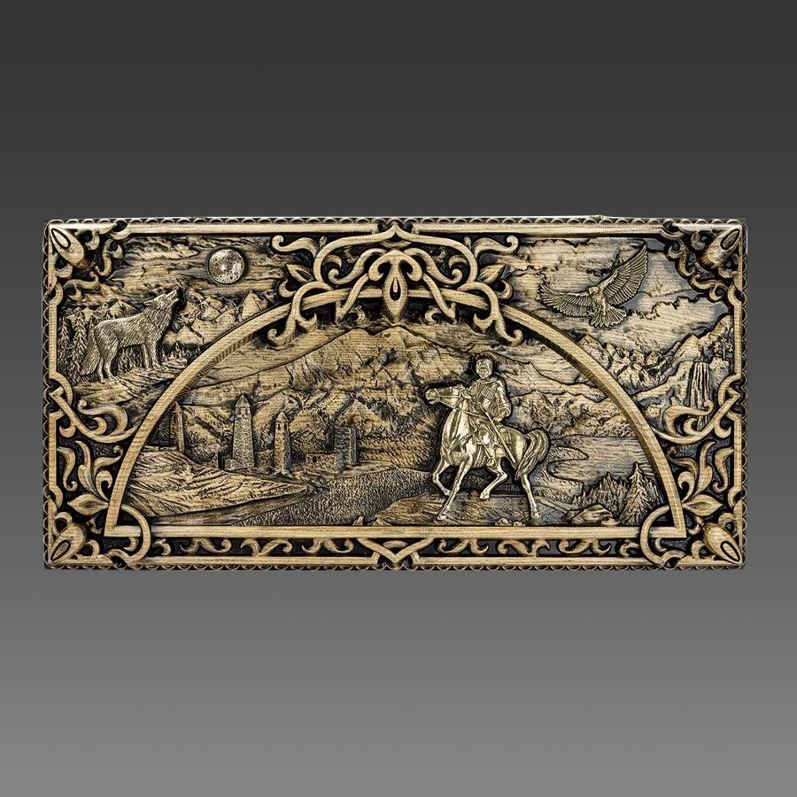 Êîëëåêöèîííûå ïîäàðî÷íûå íàðäû ñ óçíàâàåìûì êàâêàçñêèì êîëîðèòîì. Ñ îáåèõ ñòîðîí íàðäû óêðàøàåò âèòèåâàòûé ðåçíîé îðíàìåíò, îáðàìëÿþùèé ñþæåò. Çäåñü âñàäíèê ñêà÷åò íà ðåòèâîì êîíå ñðåäè ðîäîâûõ áàøåí â äèâíûõ êðàñîòàõ êàâêàçñêîé ïðèðîäû, à ãäå-òî â ãîðàõ íà ëóíó âîåò âîëê. Íàðäû âûïîëíåíû èç äåðåâà ÿñåíÿ, à âñå ìåòàëëè÷åñêèå ÷àñòè èç ïàòèíèðîâàííîé áðîíçû. Ñîáðàííûå ïîëíîñòüþ âðó÷íóþ, íàðäû ïîðàæàþò êàæäîé þâåëèðíî âûïîëíåííîé äåòàëüþ. Ôèøêè âûïîëíåíû èç íàòóðàëüíîãî êàìíÿ, îáðàìëåííîãî áðîíçîâûì ôèëèãðàííûì óçîðîì. Íàðäû ïîñëóæàò ñòàòóñíûì è ðîñêîøíûì ïîäàðêîì, êîòîðûé ñòàíåò áåðåæíî õðàíèìîé ôàìèëüíîé öåííîñòüþ. |