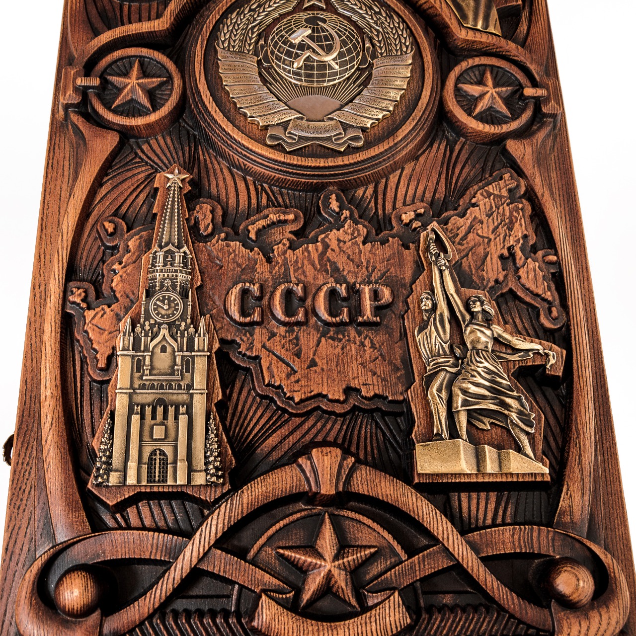 Êîëëåêöèîííûå ïîäàðî÷íûå íàðäû, ïîñâÿù¸ííûå òåìàòèêå ýïîõè ÑÑÑÐ. Íàðäû âûïîëíåíû èç ìàññèâà ÿñåíÿ, à âñå ìåòàëëè÷åñêèå äåòàëè ñäåëàíû èç ïàòèíèðîâàííîé áðîíçû. Ðåçíóþ êðûøêó óêðàøàþò íàêëàäêè â âèäå ãåðáà ÑÑÑÐ è çíàêîâûõ ìîìåíòîâ èñòîðèè è äîñòîïðèìå÷àòåëüíîñòåé: Þðèé Ãàãàðèí, ñèìâîëèçèðóþùèé ïåðâûé ïîë¸ò â êîñìîñ; âîæäü ïðîëåòàðèàòà Â.È. Ëåíèí; Ñïàññêàÿ áàøíÿ Êðåìëÿ è êóëüòîâàÿ ñêóëüïòóðà «Ðàáî÷èé è êîëõîçíèöà». Óíèêàëüíàÿ àâòîðñêàÿ ðàáîòà ïîñëóæèò çàìå÷àòåëüíûì è ñòàòóñíûì ïîäàðêîì, êîòîðûé ñòàíåò ñî âðåìåíåì áåðåæíî õðàíèìîì ôàìèëüíûì ðàðèòåòîì. |