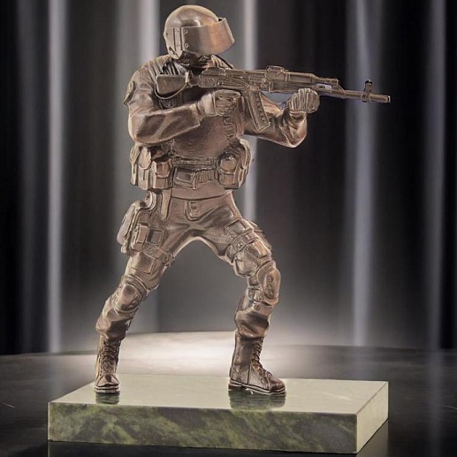 Ïðåäñòàâëÿåì âàøåìó âíèìàíèþ ýêñêëþçèâíóþ áðîíçîâóþ êîìïîçèöèþ Ñïåöíàçîâåö. Èçäåëèå âûïîëíåíî ñ íåïðåâçîéäåííîé äåòàëèçàöèåé è òî÷íîñòüþ, ïåðåäàþùåé ñìåëîñòü è îòâàãó áîéöà ñïåöíàçà. Áîåö ðîññèéñêîãî ñïåöíàçà èçîáðàæåí â ïîëíîì îáìóíäèðîâàíèè, ãîòîâûé ê ëþáûì èñïûòàíèÿì. Ìîùü è åäèíñòâî ñ áðàòñêèì íàðîäîì âîïëîùåíû â ýòîì ñòàòè÷íîì ïðåäñòàâëåíèè, çàÿâëÿþùåì î ìóæåñòâå è íàñòîé÷èâîé ñèëå íàøåãî íàðîäà.