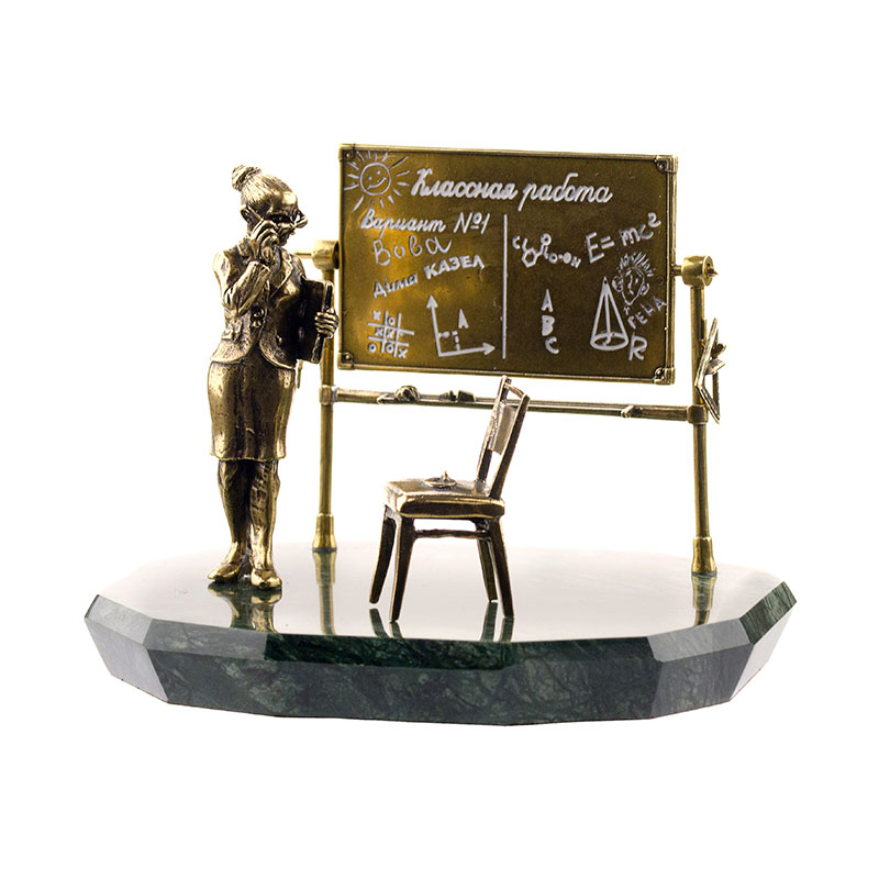 Ïîäàðèòå ÷àñòü ñâîèõ ýìîöèé è òåïëûõ âîñïîìèíàíèé âàøåé ëþáèìîé ó÷èòåëüíèöå ñ ïîìîùüþ íàøåãî ýêñêëþçèâíîãî òîâàðà — áðîíçîâîé êîìïîçèöèè Ó÷èòåëüíèöà (çà äîñêîé). Íàøå ïðîèçâåäåíèå èñêóññòâà, âûïîëíåííîå èç âûñîêîêà÷åñòâåííîé áðîíçû ñ ïîìîùüþ ìàñòåðîâ ñâîåãî äåëà, èäåàëüíî ïåðåäàåò îáðàç ñòðîãîé, íî ñïðàâåäëèâîé è äîáðîé ó÷èòåëüíèöû. Ó÷èòåëüíèöà çà äîñêîé — ýòî ñèìâîë òðóäíîñòè è îäíîâðåìåííî óäîâëåòâîðåíèÿ îò ðîëè, êîòîðóþ ýòè íåîöåíèìûå ëþäè èãðàþò â íàøåé æèçíè. Íèêòî íå çàáûâàåò ñâîåãî ïåðâîãî ó÷èòåëÿ, êîòîðûé âíåñ îãðîìíûé âêëàä è îñòàâèë íåèçãëàäèìûé ñëåä â íàøåé æèçíè.