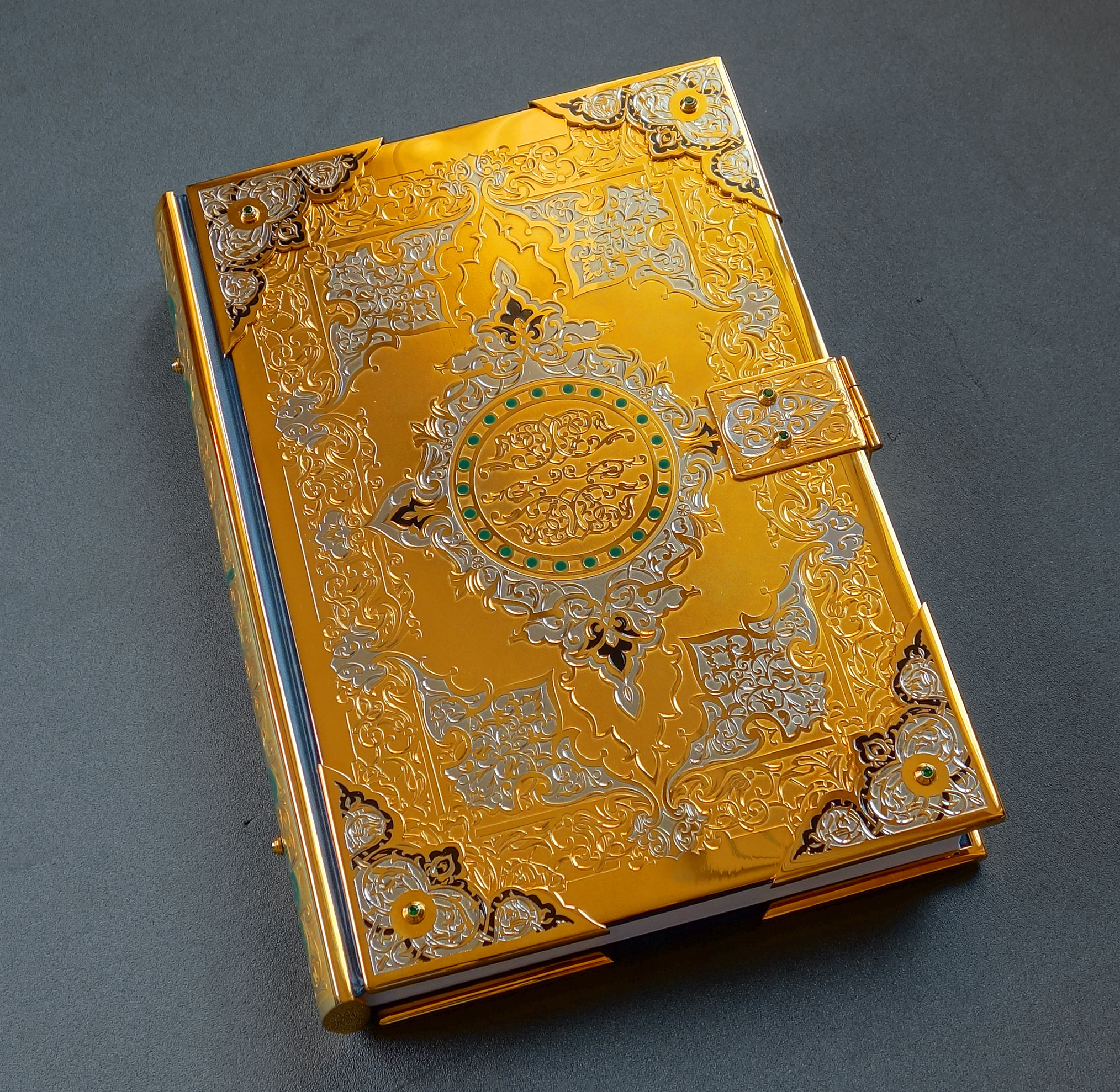 Ýòî íå ïðîñòî Êîðàí, ýòî èñêóññòâî èç Çëàòîóñòà. Êíèãà óêðàøåíà öåëüíîìåòàëëè÷åñêèì îêëàäîì, èñêóñíî âûïîëíåííîé ýìàëüþ è âñòàâêàìè èç ôèàíèòîâ. Âåëèêîëåïíàÿ ðàáîòà ìàñòåðîâ Çëàòîóñòà äåëàåò ýòîò Êîðàí íàñòîÿùèì ïðîèçâåäåíèåì èñêóññòâà è âåëèêîëåïíûì ïîäàðêîì äëÿ ëþáîãî, êòî öåíèò èñëàìñêóþ êóëüòóðó è èñêóññòâî. Ýòîò Êîðàí ÿâëÿåòñÿ èäåàëüíûì äîïîëíåíèåì ê ëþáîé êîëëåêöèè èñêóññòâà èëè èäåàëüíûì ïîäàðêîì äëÿ îñîáîãî ñëó÷àÿ. |