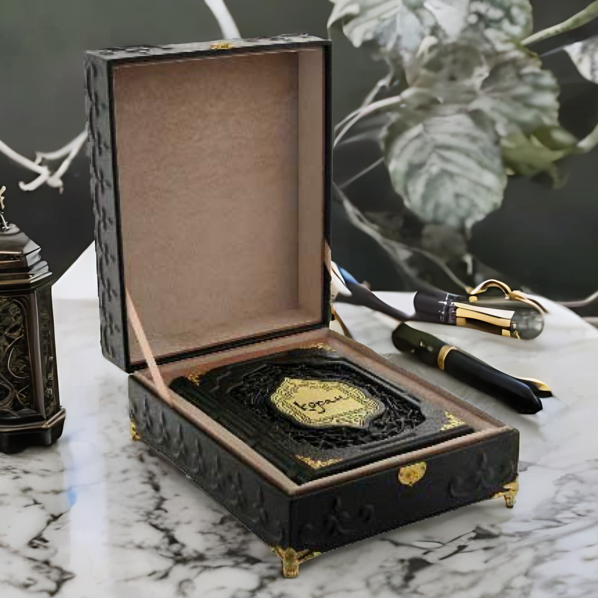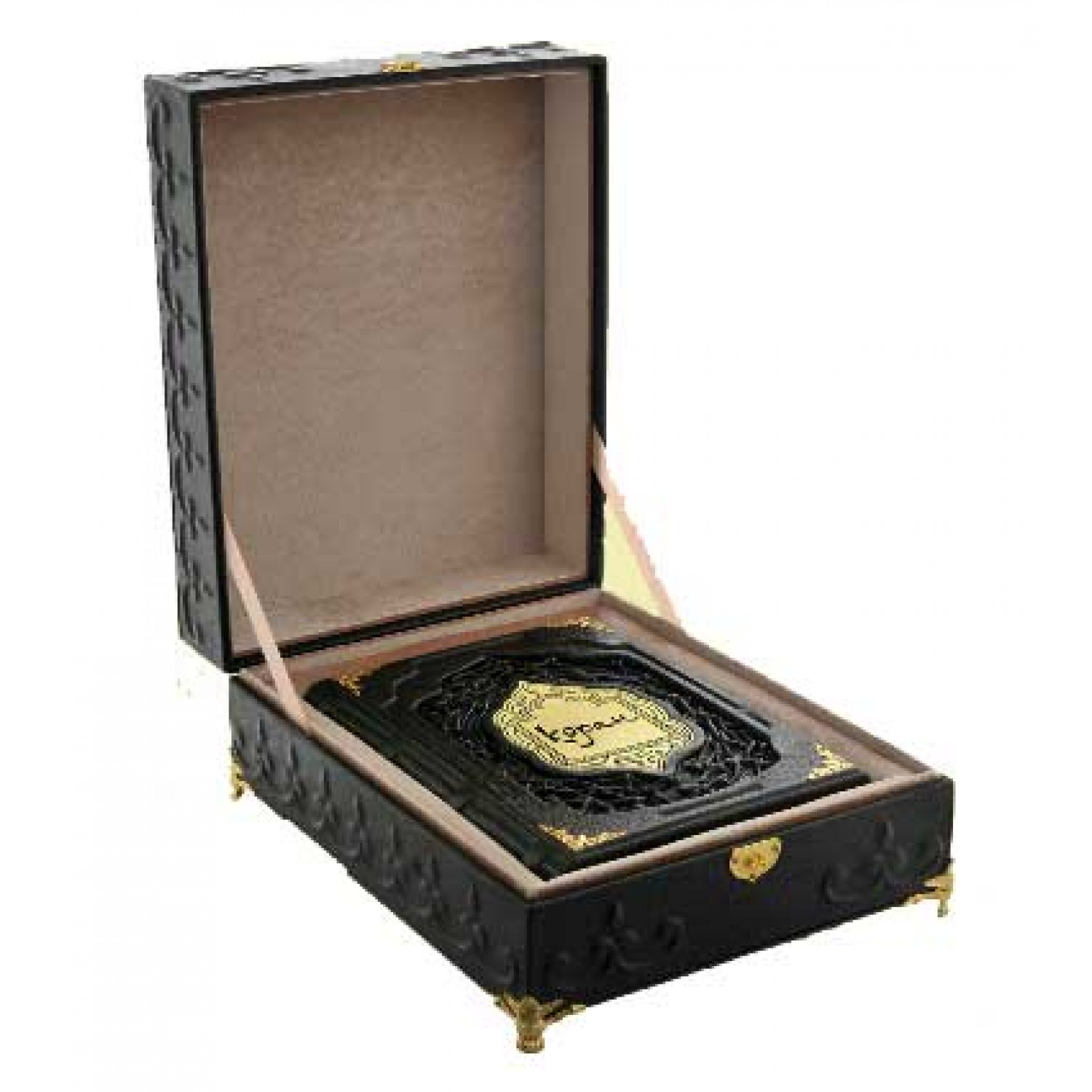 Ýòî êëàññè÷åñêèé ïåðåâîä ñâÿùåííîé äëÿ ìóñóëüìàí êíèãè îò Ã.Ñ Ñàáëóêîâà, êîòîðûì ïîëüçóþòñÿ óæå áîëåå 150 ëåò, ñ÷èòàÿ åãî íàèáîëåå âåðíûì.  íàøåé ñòðàíå è çà ðóáåæîì «Êîðàí» èçäàâàëñÿ è ïåðåèçäàâàëñÿ ìíîæåñòâî ðàç, íî ïî-ïðåæíåìó áîãîñëîâû ïðèçíàþò åãî îáðàçöîì. Ðàíåå èçäàòåëüñòâî Áà óæå âûïóñêàëî â ñâåò ïîäàðî÷íûé âàðèàíò ýòîé êíèãè íà àðàáñêîì ÿçûêå, â äâóÿçû÷íîì èñïîëíåíèè äëÿ èçó÷àþùèõ è òîëüêî íà ðóññêîì â êîëëåêöèîííîì âàðèàíòå. Ýòà êíèãà ïðåäñòàâëÿåò ñîáîé áîëüøîé ðóññêîÿçû÷íûé ôîðìàò, ïðåäñòàâëåííûé ñåðèåé «Âå÷íûå êíèãè». Ñîçäàâàÿ êîðîá ìàñòåð ïîòðóäèëñÿ ñäåëàòü åãî óíèêàëüíûì, íî ïðè ýòîì äîñòàòî÷íî ñäåðæàííûì. Îôîðìëåíèå ñõîæå ñ êíèæíûì, åñòü ãëàâíàÿ âñòàâêà ñ íàçâàíèåì êíèãè è òèñíåíèå íà ïåðåäíåì ïëàíå. Íåñìîòðÿ íà îòñóòñòâèå îãðîìíîãî êîëè÷åñòâà äîïîëíèòåëüíûõ ýëåìåíòîâ, êîðîá âûãëÿäèò ïî-ñâîåìó øèêàðíî è áîãàòî, ïîýòîìó ñòàíîâèòñÿ ïðèÿòíûì äîïîëíåíèåì ê êíèãå. Êîðîá: Íàêëàäêà - ìåòàëë ãðàâèðîâêà Êíèãà: Íàêëàäêà - ìåòàëë ãðàâèðîâêà |
