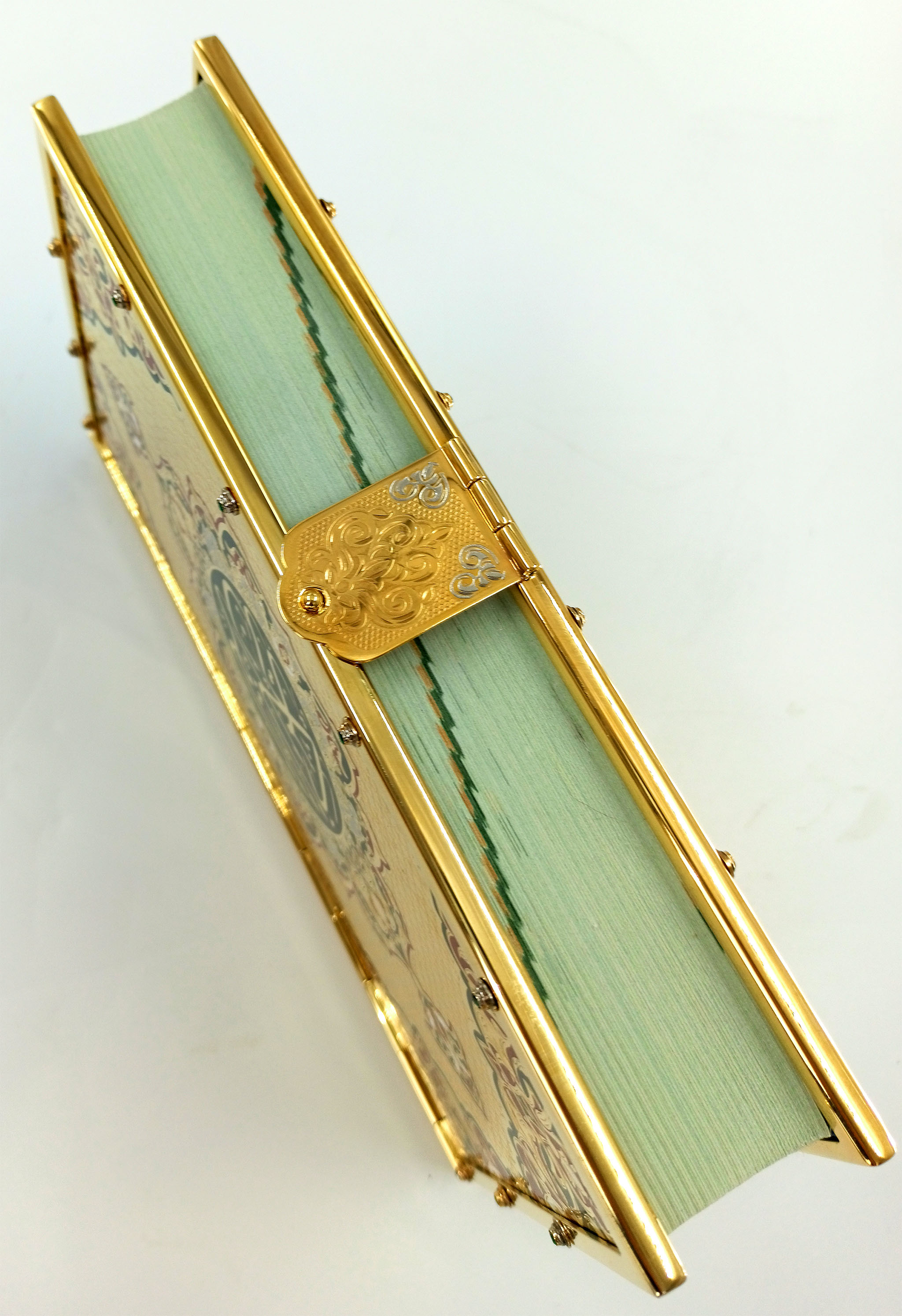 Êîðàí ¹ 2 èç Çëàòîóñòà – ýòî íå ïðîñòî ñâÿùåííàÿ êíèãà, ýòî íàñòîÿùåå ïðîèçâåäåíèå èñêóññòâà. Ðîñêîøíûé öåëüíîìåòàëëè÷åñêèé îêëàä, óêðàøåííûé ýìàëüþ è áëåñòÿùèìè ôèàíèòàìè, ïðåâðàùàåò Êîðàí â ýêñêëþçèâíûé ïðåäìåò êîëëåêöèè. Èçäàíèå âûïîëíåíî íà âûñîêîêà÷åñòâåííîé áóìàãå. Êîðàí ¹ 2 èäåàëüíî ïîäõîäèò â êà÷åñòâå ïîäàðêà ê ðåëèãèîçíûì ïðàçäíèêàì èëè äðóãèì òîðæåñòâåííûì ñîáûòèÿì. Îí ïîä÷åðêíåò ãëóáîêóþ âåðó è äóõîâíîñòü îáëàäàòåëÿ, ïðèäàâàÿ åãî äîìó îñîáóþ àòìîñôåðó. |