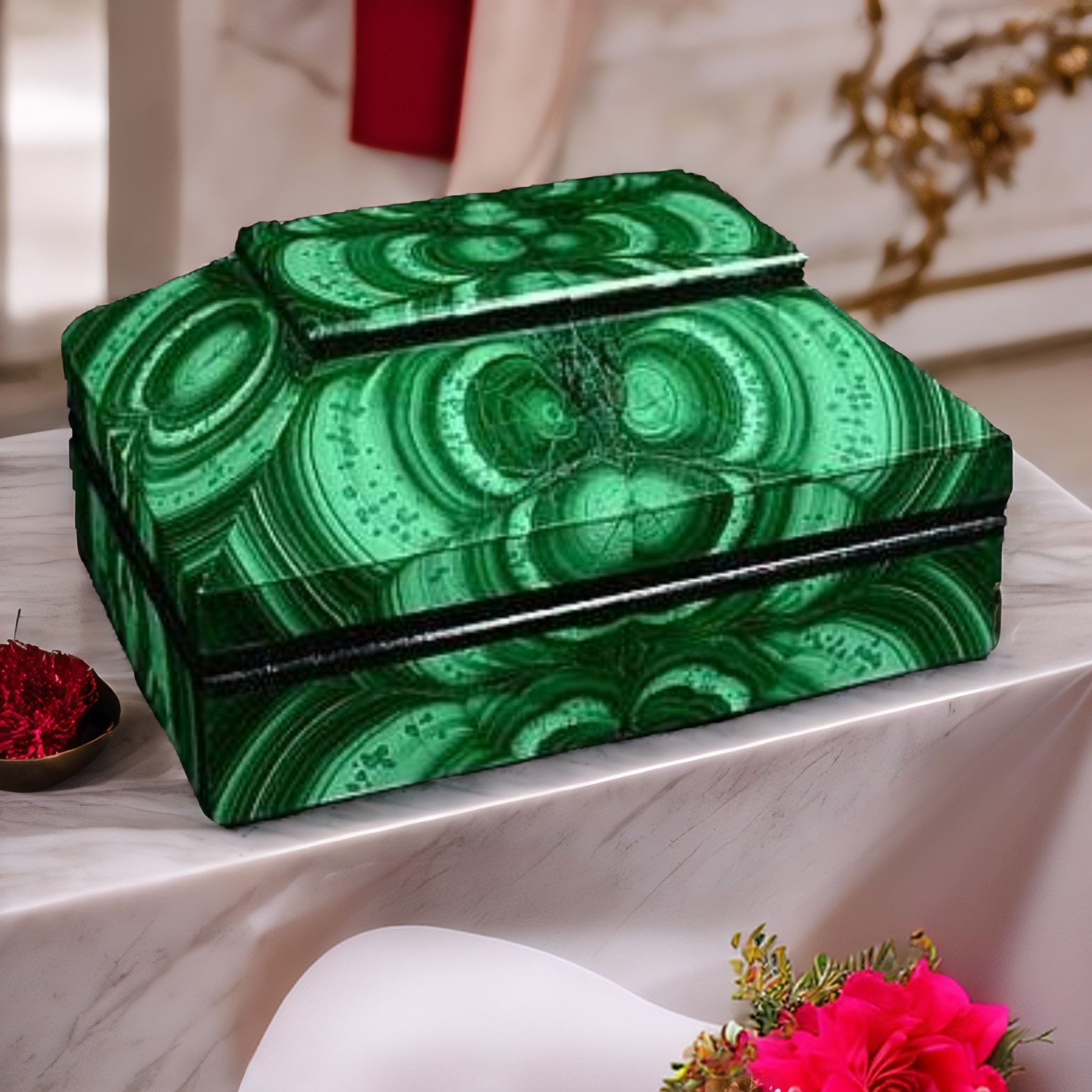 Íàøà øêàòóëêà äëÿ êîëåö èç ìàëàõèòà — ýòî íå òîëüêî êðàñèâàÿ, íî è ôóíêöèîíàëüíàÿ âåùü. Îíà ïîìîæåò ñîõðàíèòü âàøè ñàìûå ëþáèìûå óêðàøåíèÿ â èäåàëüíîì ñîñòîÿíèè! |