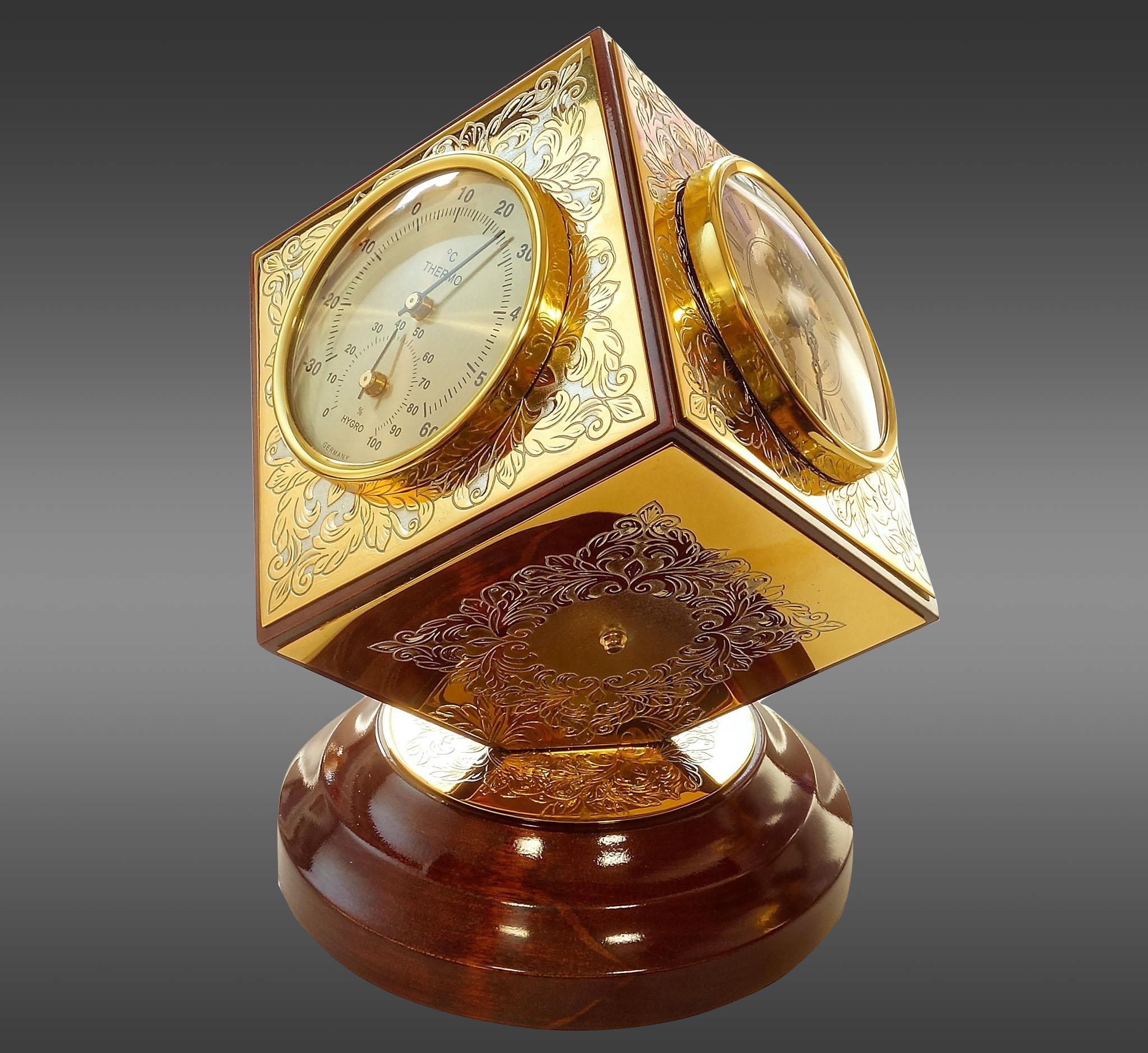 Ìåòåîñòàíöèÿ ñ ÷àñàìè "Êóá" èç Çëàòîóñòà - ýòî íàñòîÿùèé óíèâåðñàëüíûé ïîìîùíèê äëÿ êàæäîãî äîìà. Èçäåëèå âêëþ÷àåò â ñåáÿ ÷àñû, ãèãðîìåòð, áàðîìåòð è òåðìîìåòð, ðàñïîëîæåííûå íà ñòîðîíàõ êóáà. Âñå ýëåìåíòû óêðàøåíû êðàñèâîé ãðàâèðîâêîé â òðàäèöèÿõ Çëàòîóñòà. Òàêîé ïîäàðîê áóäåò îñîáåííî àêòóàëüíûì äëÿ ëþäåé, óâëå÷åííûõ ìåòåîðîëîãèåé èëè ïðîñòî ïðåäïî÷èòàþùèõ êîíòðîëèðîâàòü âñå ïàðàìåòðû ñâîåãî äîìàøíåãî êîìôîðòà. Òàêæå ìåòåîñòàíöèÿ ñòàíåò îòëè÷íûì äîïîëíåíèåì ê èíòåðüåðó, ïðèäàâ åìó íåïîâòîðèìûé øàðì è ýëåãàíòíîñòü. Âûñîêîå êà÷åñòâî ìàòåðèàëîâ è èçãîòîâëåíèÿ ãàðàíòèðóåò äîëãèé ñðîê ñëóæáû äàííîãî èçäåëèÿ. |