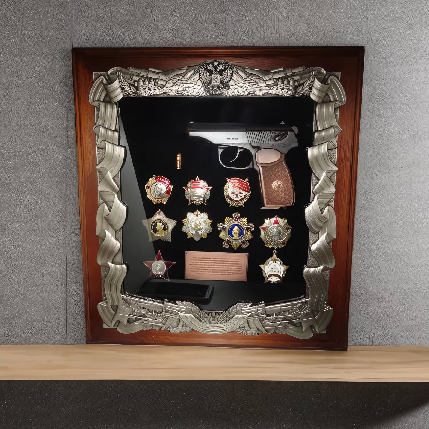 Äåðåâÿííàÿ íàñòåííàÿ êëþ÷íèöà ñ ïèñòîëåòîì Ìàêàðîâà è íàãðàäàìè ÑÑÑÐ – õîðîøèé âûáîð äëÿ ïîïîëíåíèÿ àññîðòèìåíòà ìàãàçèíà ïîäàðêîâ. Èçäåëèÿ òàêîãî òèïà áóäóò øèðîêî âîñòðåáîâàíû â êà÷åñòâå êîðïîðàòèâíûõ ïðåçåíòîâ ëþäÿì, äåÿòåëüíîñòü êîòîðûõ ñâÿçàíà ñ Âîîðóæåííûìè ñèëàìè èëè ñèëîâûìè ñòðóêòóðàìè.