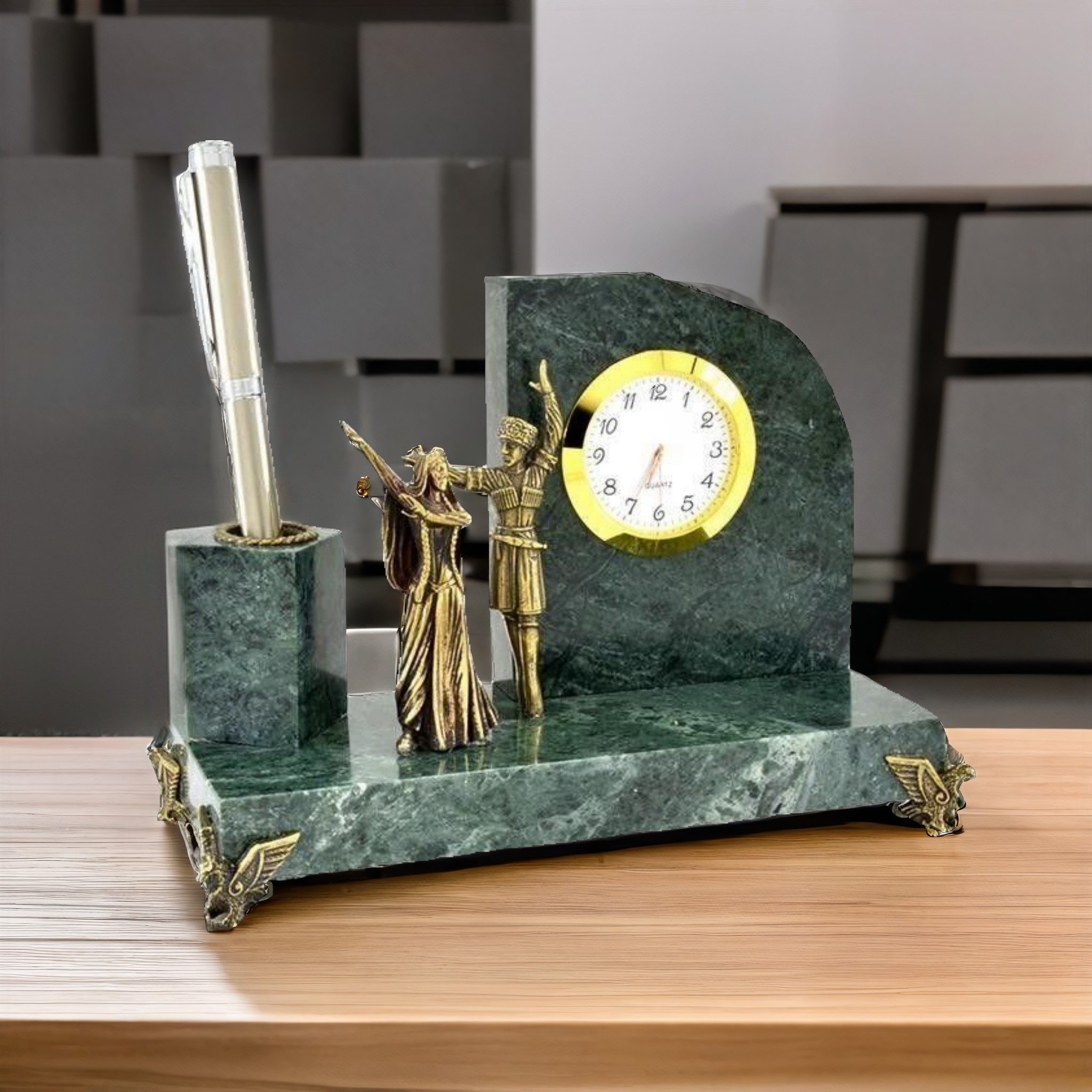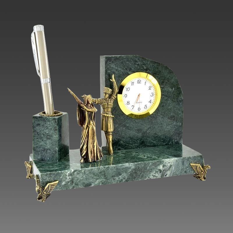 Áðîíçîâûé íàñòîëüíûé íàáîð ñ ÷àñàìè "Ãîðåö è ãîðÿíêà"