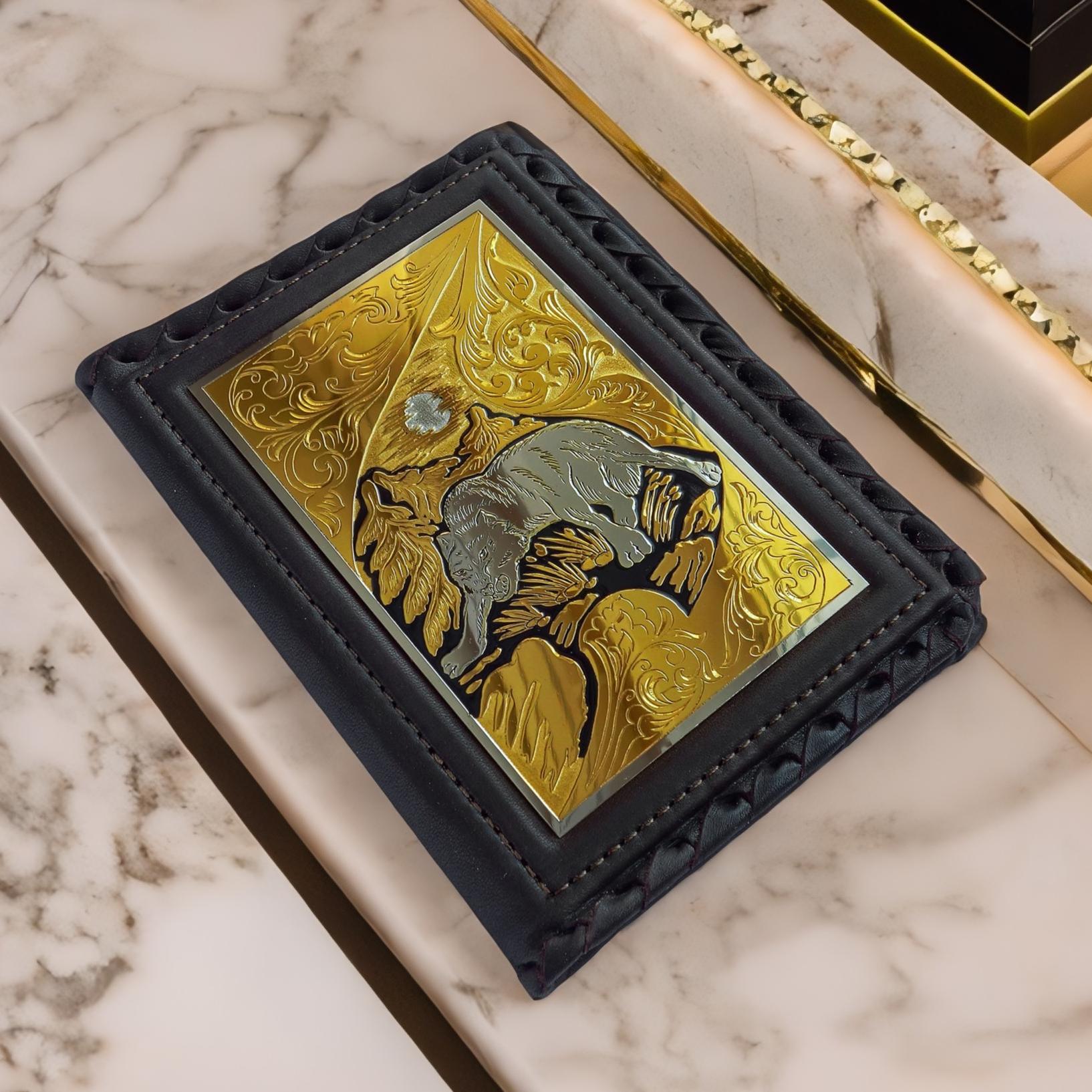 Îùóòèòå íàñòîÿùóþ ìóæñêóþ ýñòåòèêó è âêóñ ñ íàøåé íîâîé îáëîæêîé äëÿ ïàñïîðòà! Èçãîòîâëåííàÿ èç 100% íàòóðàëüíîé êîæè, ýòà îáëîæêà áóäåò íå ïðîñòî íàäåæíîé ÷åõîë äëÿ âàøåãî ïàñïîðòà, íî è ñòèëüíûì àêöåíòîì âàøåãî îáðàçà. Íî îñíîâíàÿ èçþìèíêà íàøåãî òîâàðà — ýòî óíèêàëüíîå óêðàøåíèå âûïîëíåííîå ïî òåõíîëîãèè çëàòîóñòîâñêîé ãðàâþðû ñ çîëî÷åíèåì íà ëèöåâîé ñòîðîíå îáëîæêè. Øèêàðíûé ãðàâèðîâêà âîëê ïîä÷åðêèâàåò ñèëó è ñâîáîäó ìóæñêîãî äóõà, à çîëî÷åíèå äîáàâëÿåò èçäåëèþ çàìåòíîñòè è ñòàòóñíîñòè.