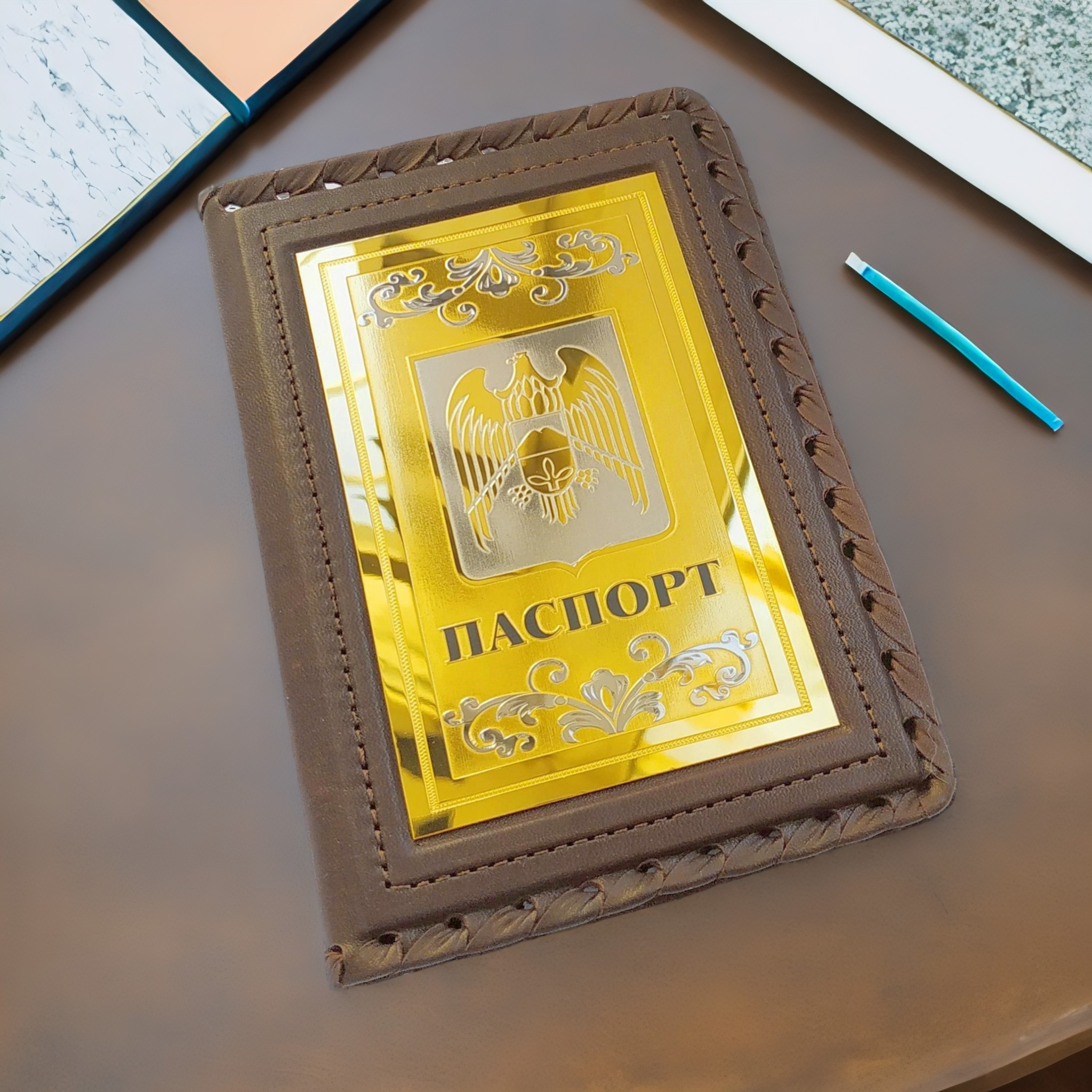 Äîðîãîé ïîêóïàòåëü! Ìû ðàäû ïðåäëîæèòü âàì îáëîæêó íà ïàñïîðò Ãåðá Êàáàðäèíî-Áàëêàðñêîé ðåñïóáëèêè. Ýòî íå ïðîñòî àêñåññóàð, à íàñòîÿùåå ïðîèçâåäåíèå èñêóññòâà, êîòîðîå ñäåëàíî èç íàòóðàëüíîé êîæè. Èçþìèíêà äàííîé îáëîæêè — óêðàøåíèå ïî òåõíîëîãèè çëàòîóñòîâñêîé ãðàâþðû ñ çîëî÷åíèåì, êîòîðîå äåëàåò å¸ ïî-íàñòîÿùåìó ðîñêîøíîé è óíèêàëüíîé.
