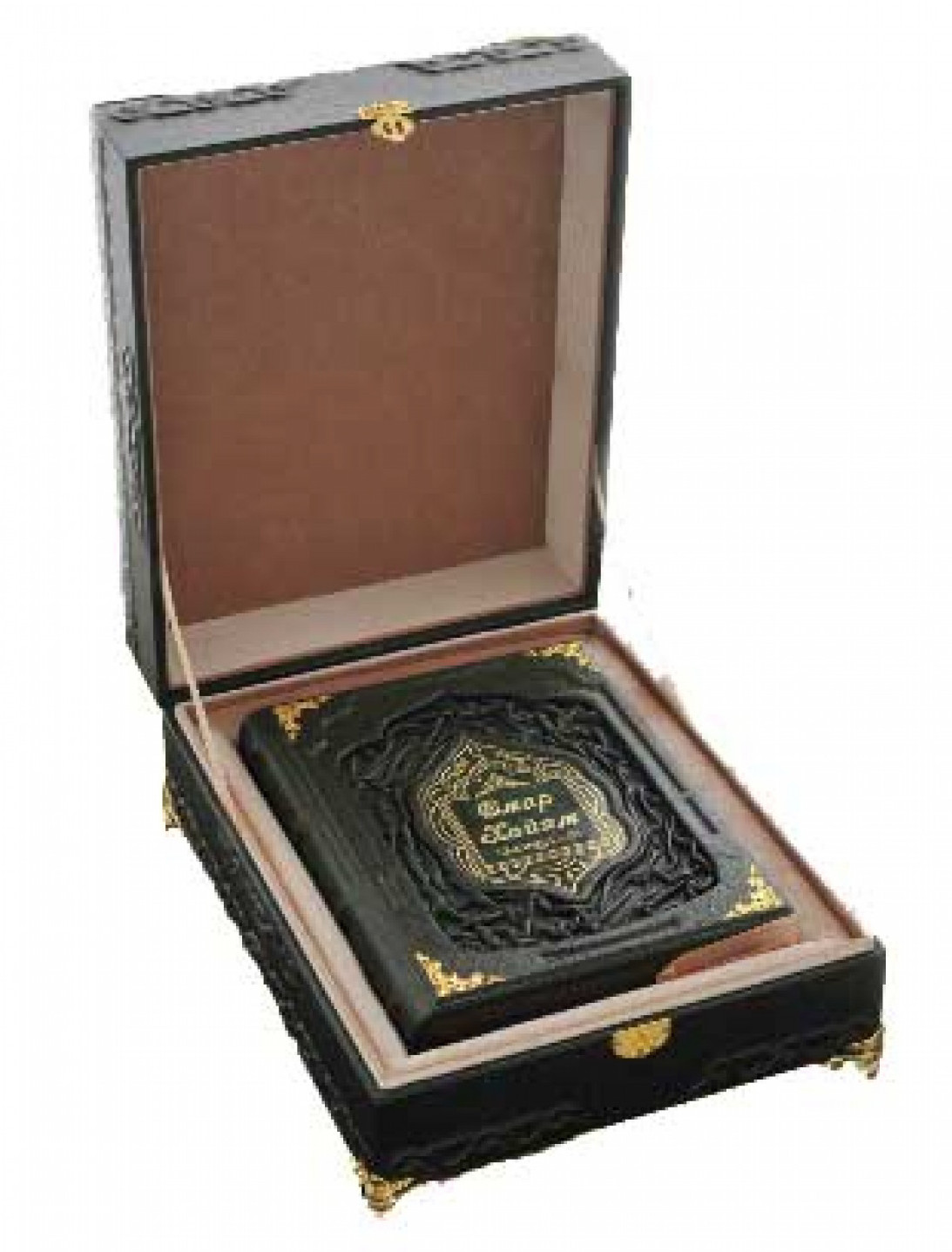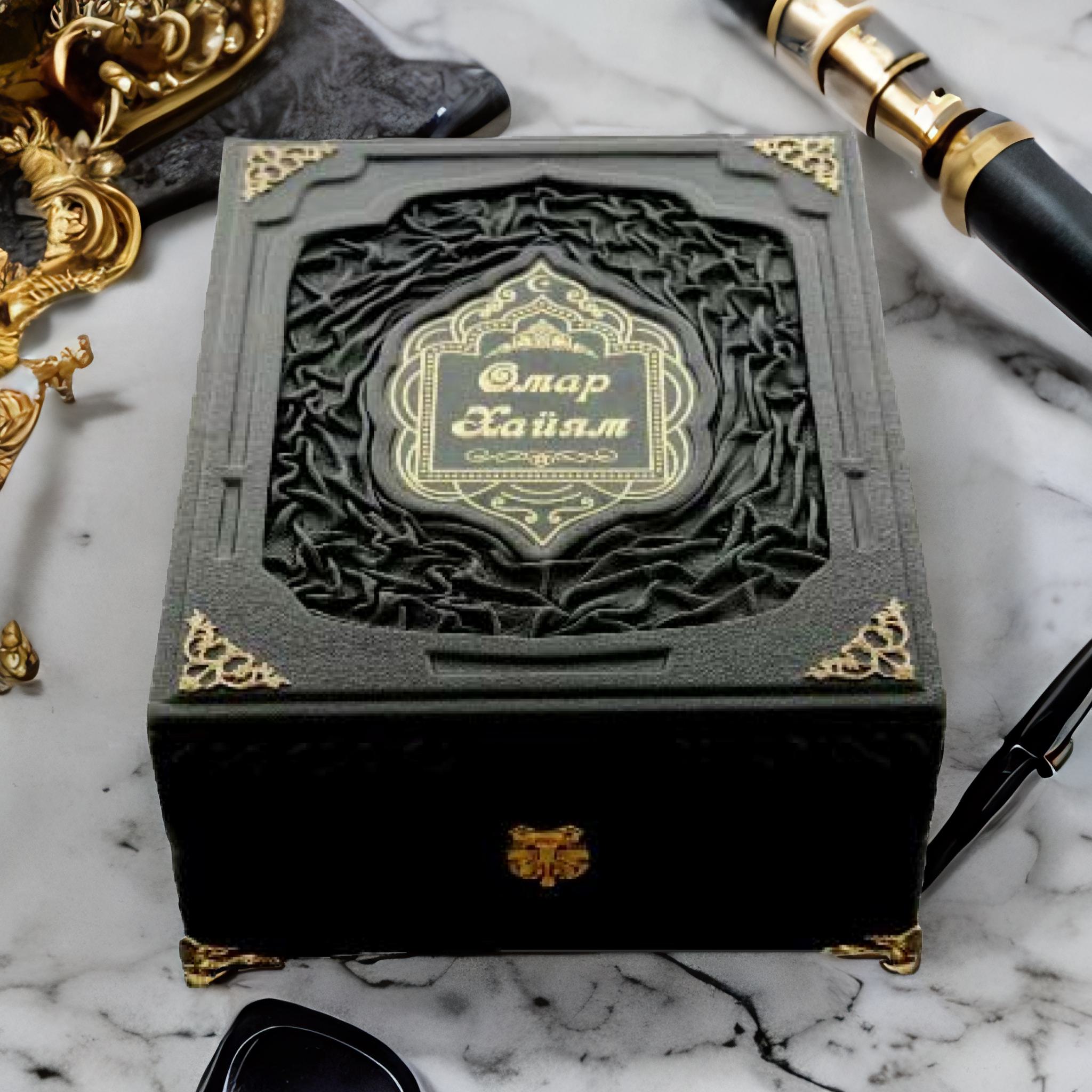 Óíèêàëüíîå ñîáðàíèå âîñòî÷íîé ìóäðîñòè ìîæíî ïðåïîäíåñòè ÷åëîâåêó â êà÷åñòâå îñîáîãî äîðîãîãî ïîäàðêà è â êîðîáå. Ïðåèìóùåñòâîì òàêîãî ïîäàðêà áóäåò íå òîëüêî óâåëè÷åíèå åãî ñòàòóñíîñòè, íî è íàëè÷èå íåîáõîäèìîãî ìåñòà äëÿ õðàíåíèÿ èçäàíèÿ. Êîðîá îáòÿãèâàåòñÿ äîðîãîé èìïîðòíîé êîæåé, â öåíòðå êðàñóåòñÿ äåêîðàòèâíàÿ âñòàâêà, îáðàìëåííàÿ òèñíåíèåì. Áîãàòûé âèä èçäåëèþ ïðèäàþò áîêîâûå óçîðû, âûïîëíåííûå â âèäå ïîçîëîòû è êà÷åñòâåííàÿ ôóðíèòóðà. Çàìîê íà êîðîáå áóäåò ñîõðàíÿòü ñâîþ ôóíêöèîíàëüíîñòü äîëãèå ãîäû, à ñàì êîðîá ìîæåò ñëóæèòü âûñòàâî÷íîé ïëîùàäêîé äëÿ èçäàíèÿ.  êà÷åñòâå ñåìåéíîé ðåëèêâèè «Îìàð Õàéÿì è ïåðñèäñêèå ïîýòû õ-õvɪ âåêà» ìîæíî ïåðåäàâàòü èç ïîêîëåíèÿ â ïîêîëåíèå èìåííî â òàêîé çàùèòíîé îáîëî÷êå. Âñÿ êîíñòðóêöèÿ ïîñòàâëåíà íà æåëåçíûå íîæêè, ïîýòîìó ñ âèäó êîðîá íàïîìèíàåò áîëüøóþ øêàòóëêó. Âíóòðè êíèãà àêêóðàòíî óêëàäûâàåòñÿ íà òêàíü, îíà íå äàåò åé èñïûòûâàòü íà ñåáå íåãàòèâíîå âëèÿíèå ïûëè è âëàãè, â òî âðåìÿ êàê îñòàëüíàÿ ÷àñòü ñîçäàåò ãåðìåòè÷íîå ïðîñòðàíñòâî äëÿ õðàíåíèÿ. Àâòîð îòëè÷íî ïðîäóìàë îáùóþ êîìïîçèöèþ è èäåàëüíî ïîäîáðàë óçîð íà öåíòðàëüíîé âêëàäêå. Èìåííî òàêèå ôîðìû èìåþò âîñòî÷íûå ðèñóíêè.  êà÷åñòâå îäíîãî èç ãëàâíûõ óêðàøåíèé âûñòóïàåò ìóñóëüìàíñêèé ñèìâîë íàä íàçâàíèåì êíèãè, õðàíÿùåéñÿ â êîðîáå. Ñîäåðæàíèå ñòðàíèö è èõ îôîðìëåíèå èëëþñòðàöèÿìè èìååò îáùèå ÷åðòû ñ îôîðìëåíèåì êîðîáà, âî ïî÷åìó îí âìåñòå ñ êíèãîé ïðåäñòàâëÿåò ñîáîé åäèíîå öåëîå. Êîë-âî èëëþñòðàöèé: 1 684. Êîðîá: Íàêëàäêà - ãðàâèðîâêà íà ìåòàëëå Êíèãà: Íàêëàäêà - ãðàâèðîâêà íà ìåòàëëå |