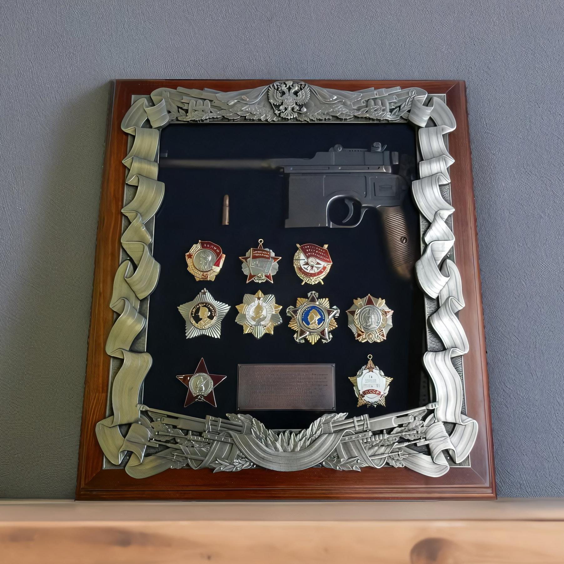 Íàñòåííîå ïàííî ñ ïèñòîëåòîì Ìàóçåð è íàãðàäàìè ÑÑÑÐ – õîðîøèé âûáîð äëÿ ïîïîëíåíèÿ àññîðòèìåíòà ìàãàçèíà ïîäàðêîâ. Èçäåëèÿ òàêîãî òèïà áóäóò øèðîêî âîñòðåáîâàíû â êà÷åñòâå êîðïîðàòèâíûõ ïðåçåíòîâ ëþäÿì, äåÿòåëüíîñòü êîòîðûõ ñâÿçàíà ñ Âîîðóæåííûìè ñèëàìè èëè ñèëîâûìè ñòðóêòóðàìè.