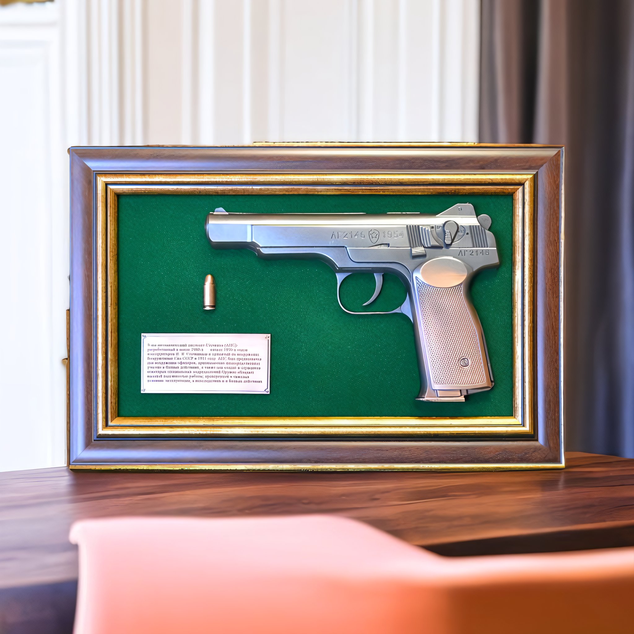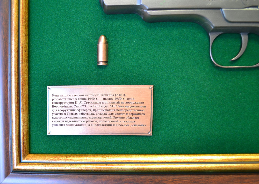 Ïàííî ñ ïèñòîëåòîì Ñòå÷êèí â ïîäàðî÷íîé êîðîáêå — ýòî íå ïðîñòî ïîäàðîê, ýòî íàñòîÿùåå ïðîèçâåäåíèå èñêóññòâà, âûïîëíåííîå â òåõíîëîãèè ãàëüâàíîïëàñòèêè. Ýòî íàñòåííîå ïàííî ñòàíåò çàìå÷àòåëüíûì óêðàøåíèåì èíòåðüåðà è îòëè÷íûì äîïîëíåíèåì ê êîëëåêöèè ëþáîãî öåíèòåëÿ îãíåñòðåëüíîãî îðóæèÿ. Âàæíî: â íàøåì ïàííî èñïîëüçîâàíà ïîäðîáíàÿ êîïèÿ ïèñòîëåòà Ñòå÷êèí, ñî âñåìè õàðàêòåðíûìè äåòàëÿìè è îñîáåííîñòÿìè äèçàéíà. Ïàííî óïàêîâàíî â ñòèëüíóþ ïîäàðî÷íóþ êîðîáêó, ÷òî äåëàåò åãî èäåàëüíûì âàðèàíòîì äëÿ ïîäàðêà.
