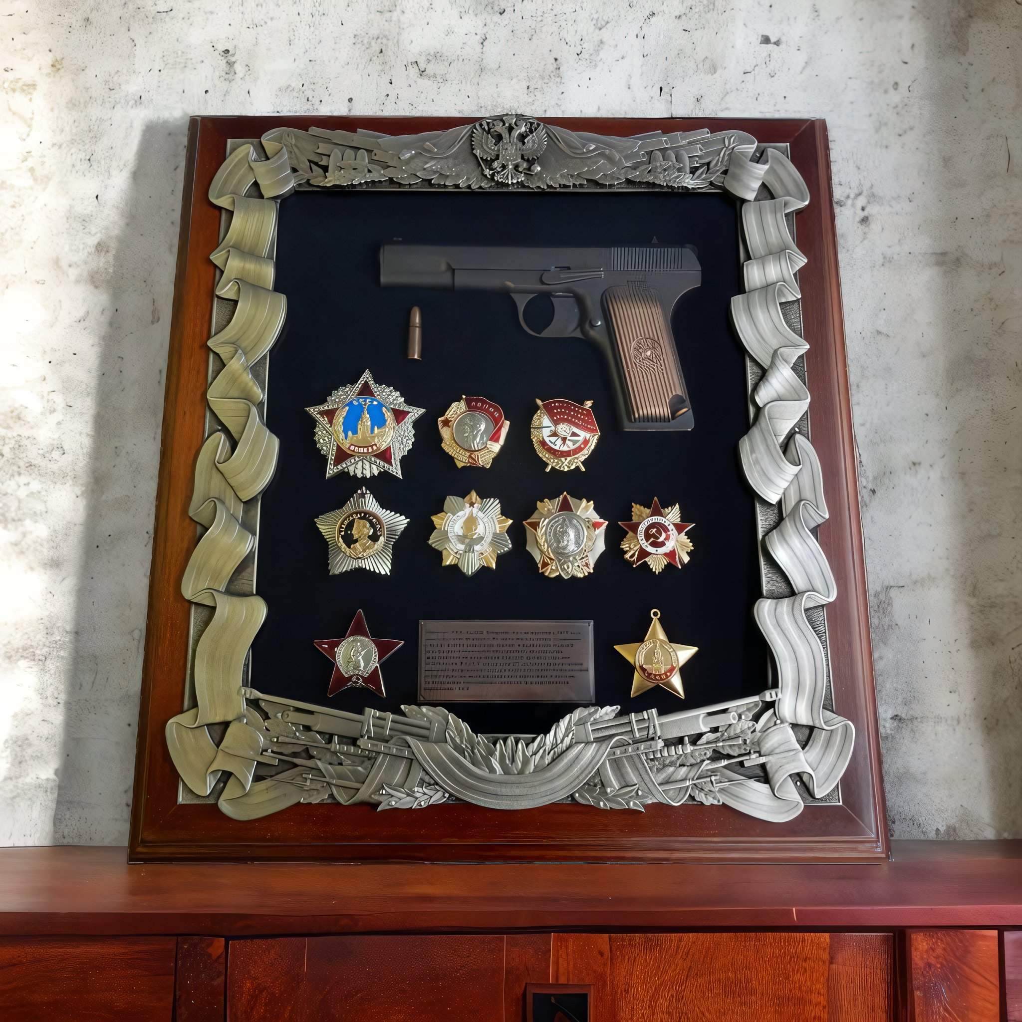 Íàñòåííîå ïàííî ñ ïèñòîëåòîì ÒÒ è íàãðàäàìè ÂΠ– õîðîøèé âûáîð äëÿ ïîïîëíåíèÿ àññîðòèìåíòà ìàãàçèíà ïîäàðêîâ. Èçäåëèÿ òàêîãî òèïà áóäóò øèðîêî âîñòðåáîâàíû â êà÷åñòâå êîðïîðàòèâíûõ ïðåçåíòîâ ëþäÿì, äåÿòåëüíîñòü êîòîðûõ ñâÿçàíà ñ Âîîðóæåííûìè ñèëàìè èëè ñèëîâûìè ñòðóêòóðàìè.