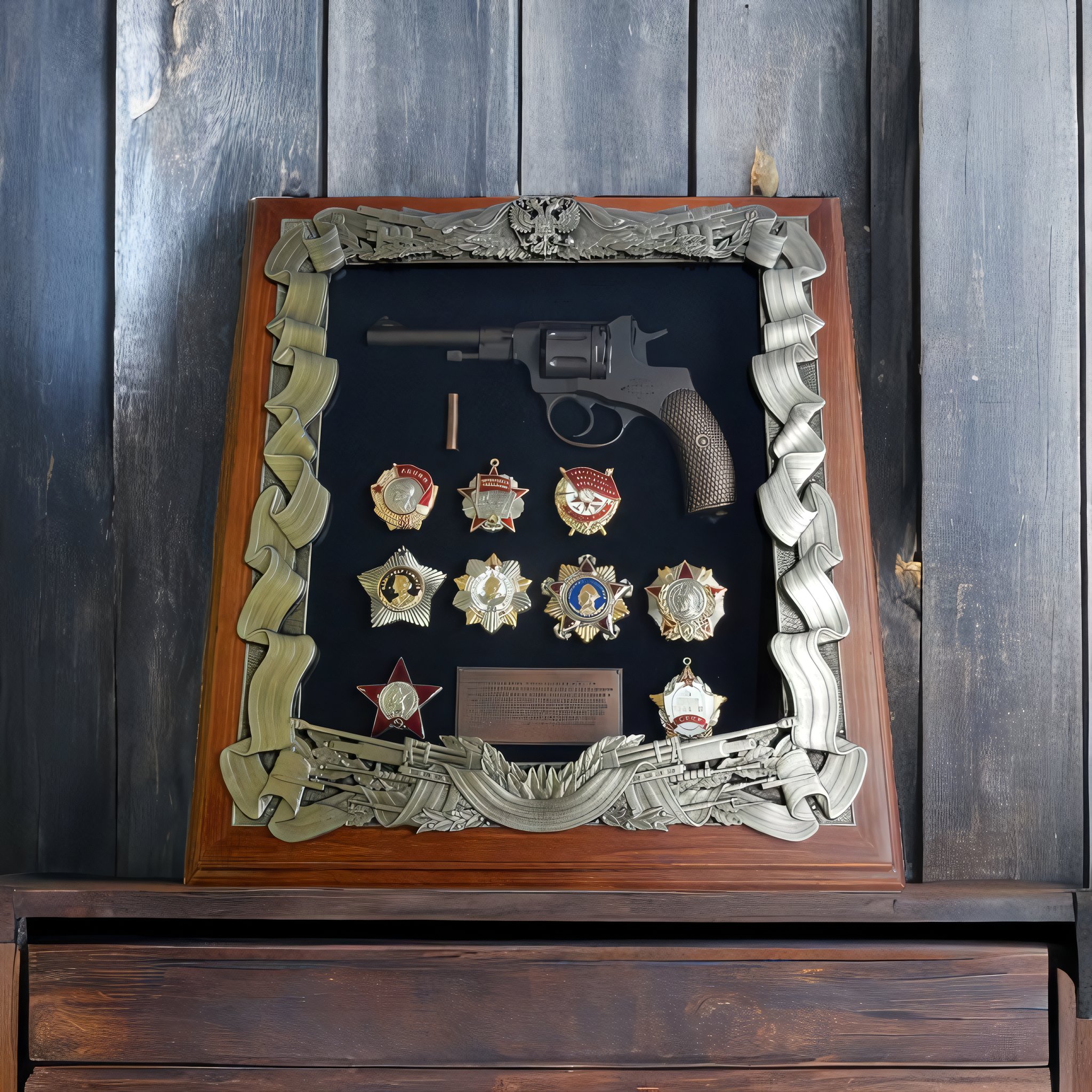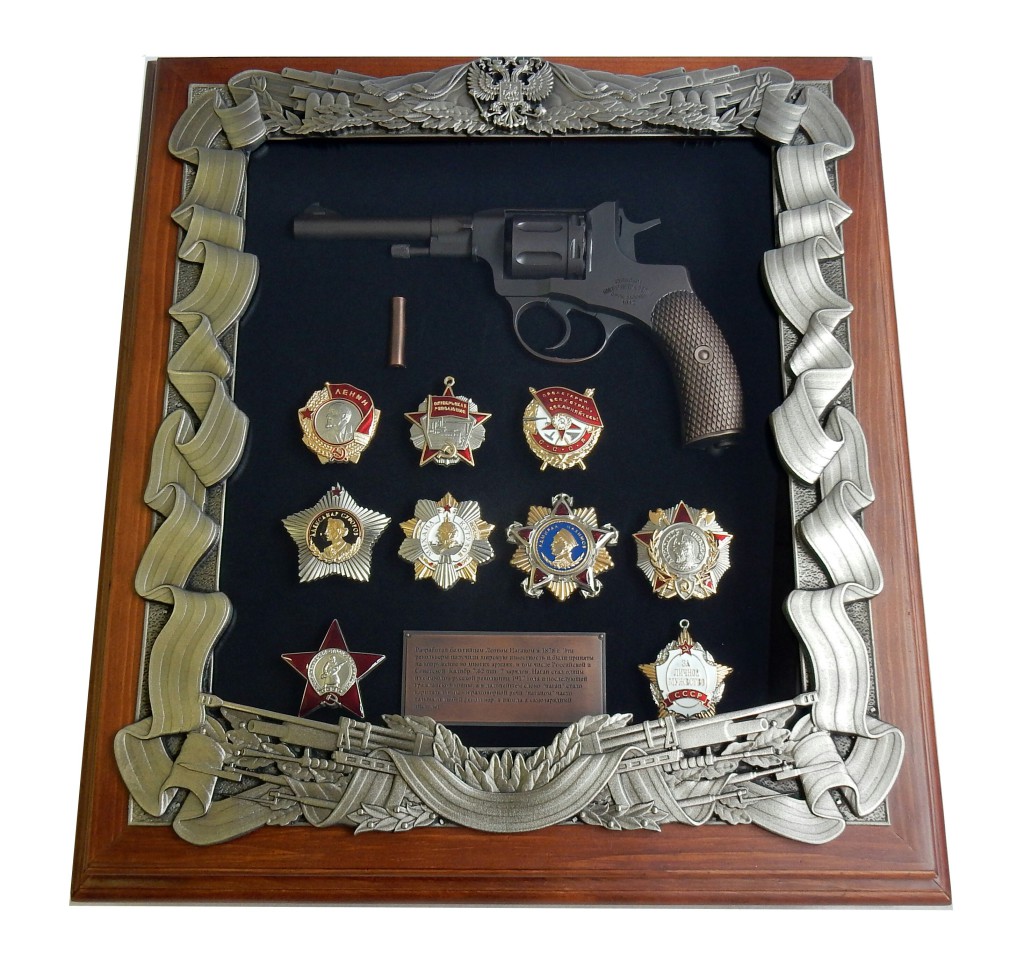 Íàñòåííîå ïàííî ñ ðåâîëüâåðîì Íàãàí è íàãðàäàìè ÑÑÑÐ – õîðîøèé âûáîð äëÿ ïîïîëíåíèÿ àññîðòèìåíòà ìàãàçèíà ïîäàðêîâ. Èçäåëèÿ òàêîãî òèïà áóäóò øèðîêî âîñòðåáîâàíû â êà÷åñòâå êîðïîðàòèâíûõ ïðåçåíòîâ ëþäÿì, äåÿòåëüíîñòü êîòîðûõ ñâÿçàíà ñ Âîîðóæåííûìè ñèëàìè èëè ñèëîâûìè ñòðóêòóðàìè.