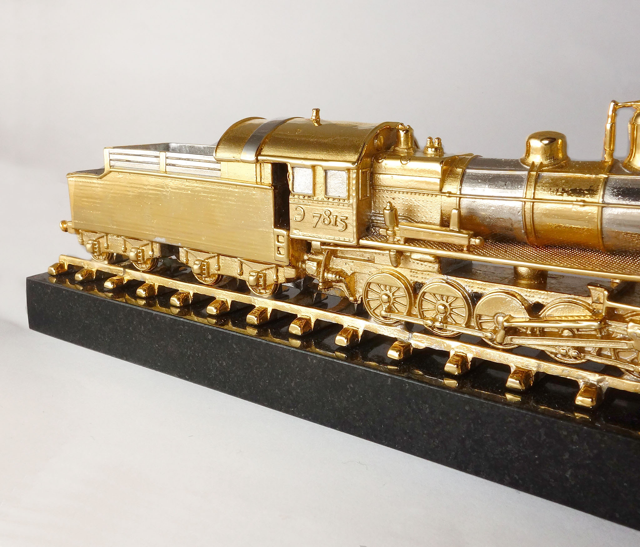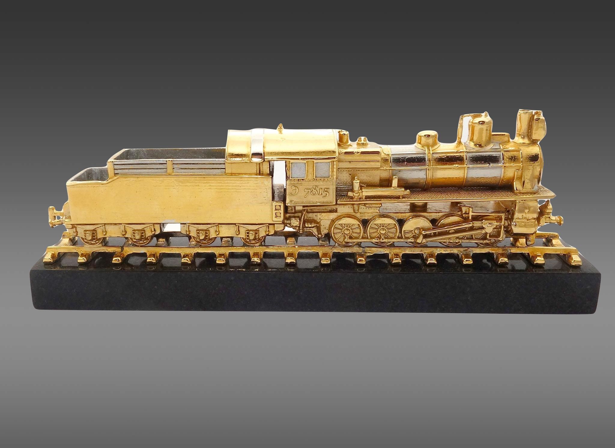 Âíèìàíèþ êîëëåêöèîíåðîâ è ëþáèòåëåé èñòîðèè æåëåçíîäîðîæíîãî òðàíñïîðòà ïðåäñòàâëÿåì øåäåâð ìîäåëüíîãî èñêóññòâà! Áðîíçîâûé ïàðîâîç Ý-7815 — ýòî âûñîêîêà÷åñòâåííàÿ ìîäåëü, âûïîëíåííàÿ ñ ó÷åòîì âñåõ òåõíè÷åñêèõ äåòàëåé îðèãèíàëüíîãî ïàðîâîçà ñåðèè Ý.