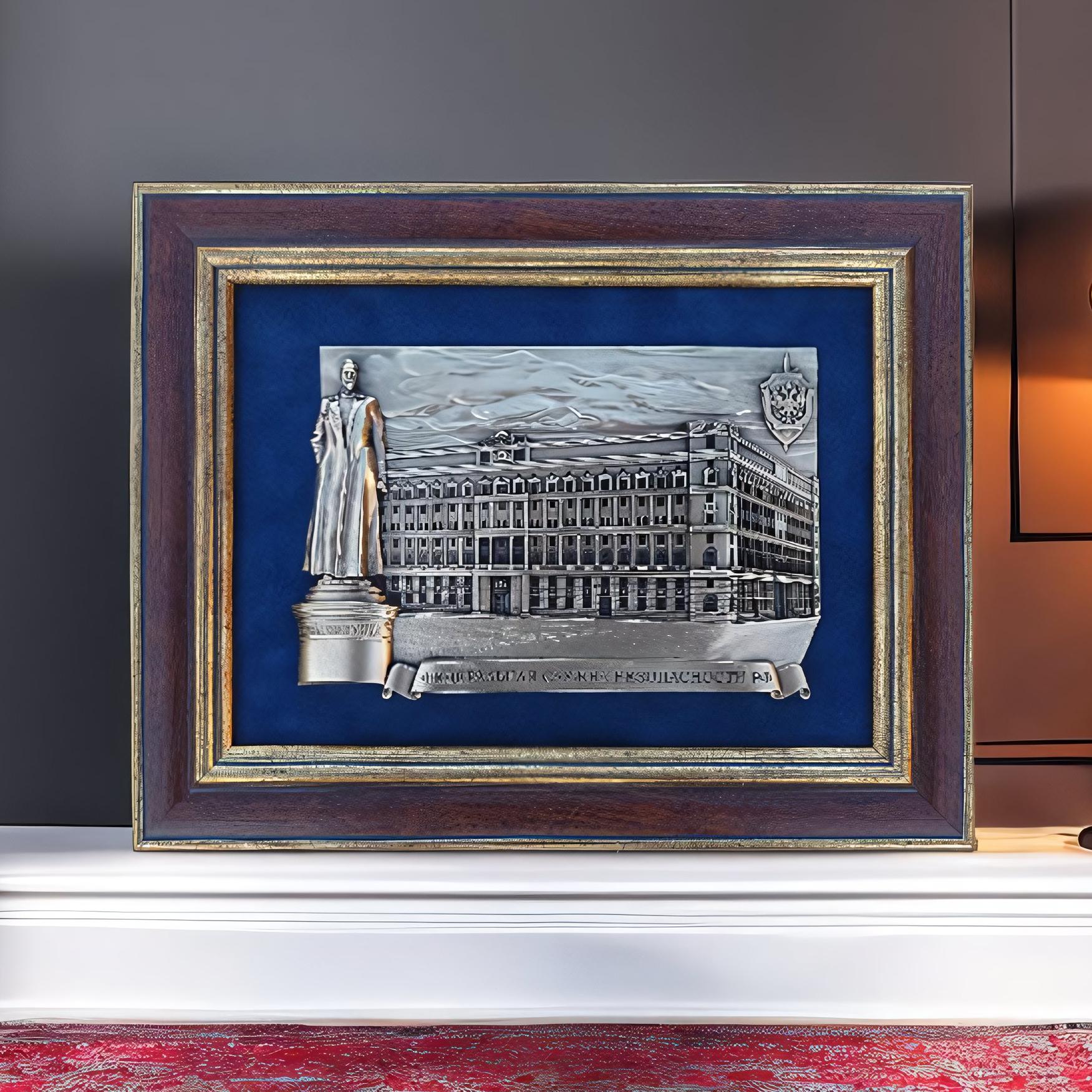 Ïëàêåòêà ñ èçîáðàæåíèåì çäàíèÿ è ýìáëåìû Ôåäåðàëüíîé ñëóæáû áåçîïàñíîñòè ÐÔ âûïîëíåíà âðó÷íóþ. Äëÿ èçãîòîâëåíèÿ ñóâåíèðà èñïîëüçîâàíû âûñîêîêà÷åñòâåííûå ìàòåðèàëû. Íà áàðõàòíîì ïàñïàðòó ñèíåãî öâåòà ìîæíî óâèäåòü ãåðàëüäè÷åñêèé çíàê ÔÑÁ. Äàííûé ýëåìåíò – ìåäíûé, îáúåìíûé. Òî÷íîñòü è ïðîðàáîòàííîñòü âñåõ äåòàëåé äîñòèãàåòñÿ áëàãîäàðÿ ïðèìåíåíèþ ìåòîäà ãàëüâàíîïëàñòèêè.
